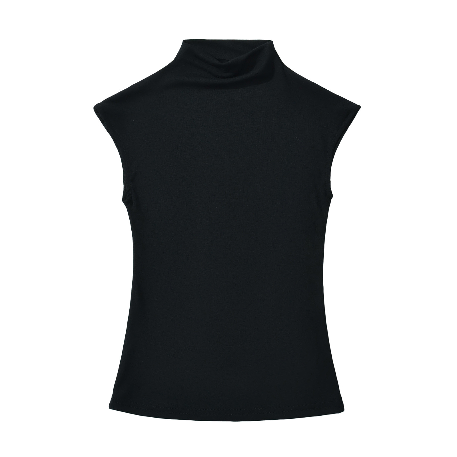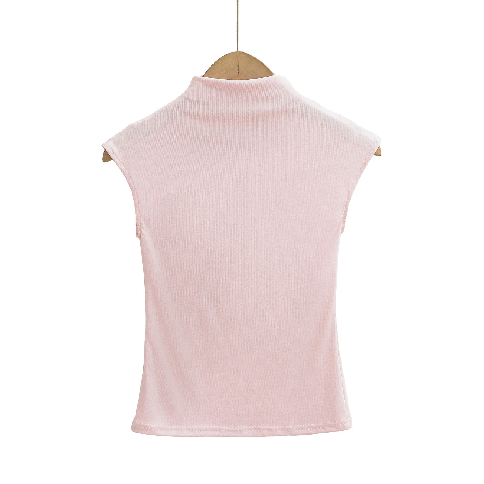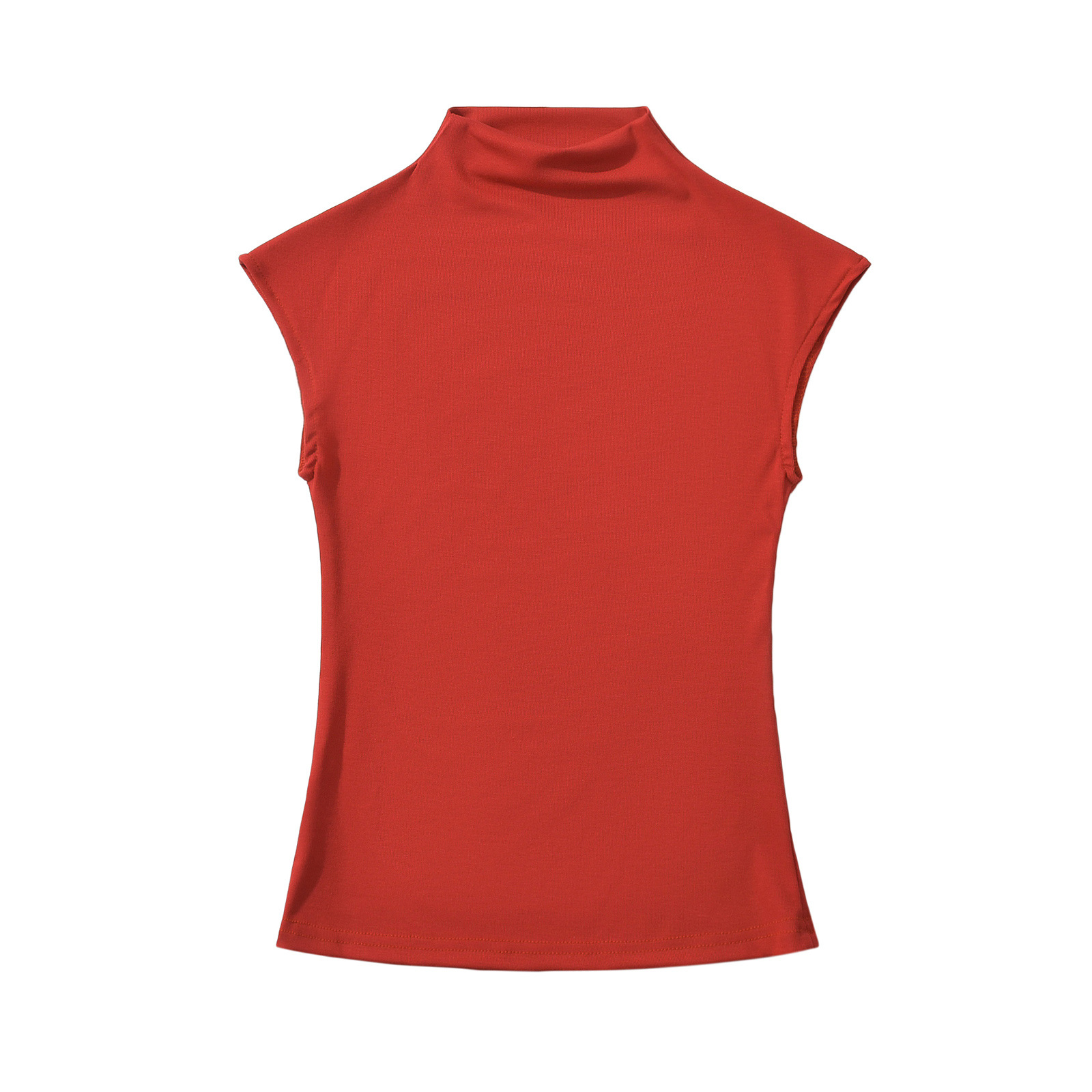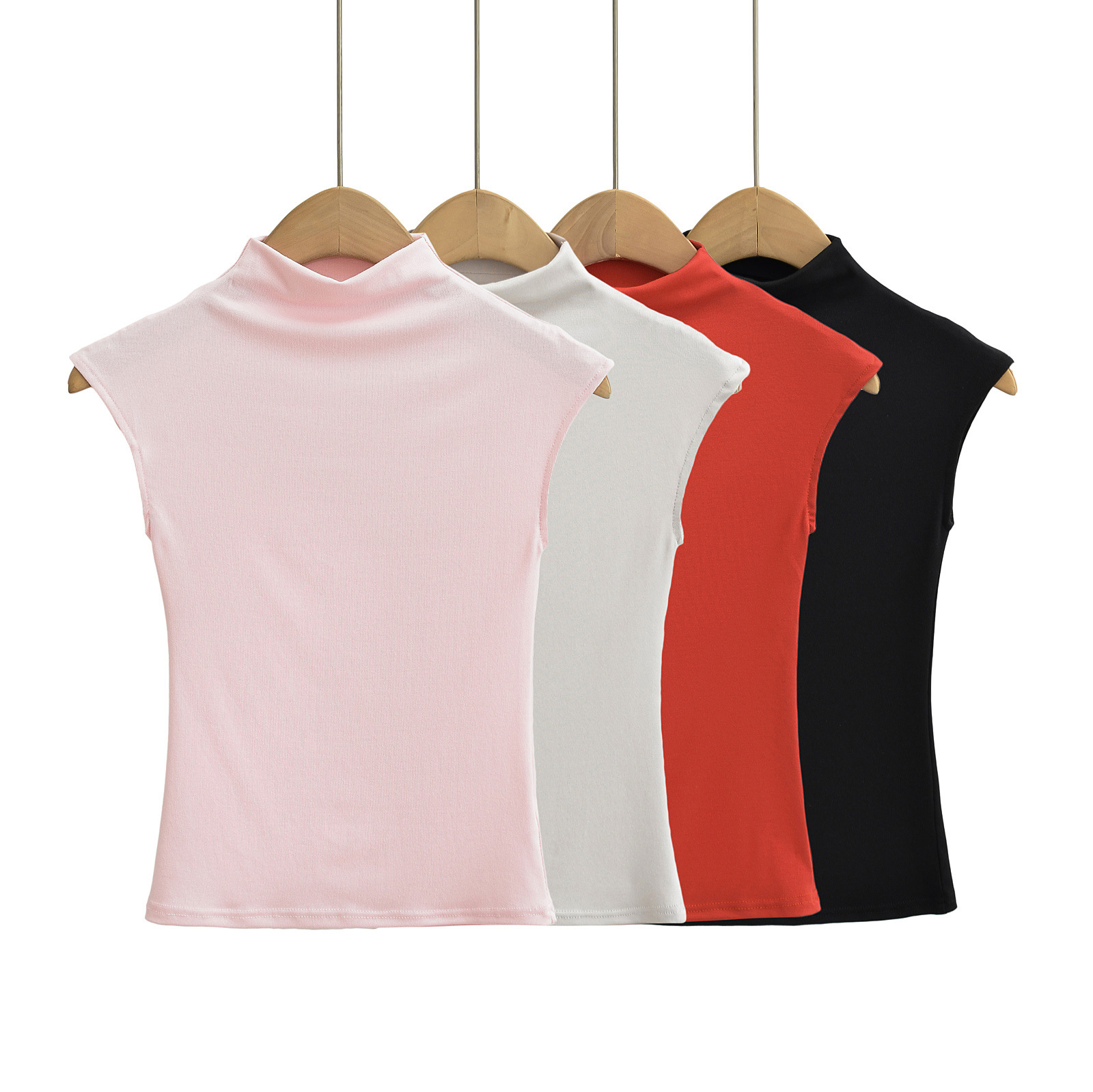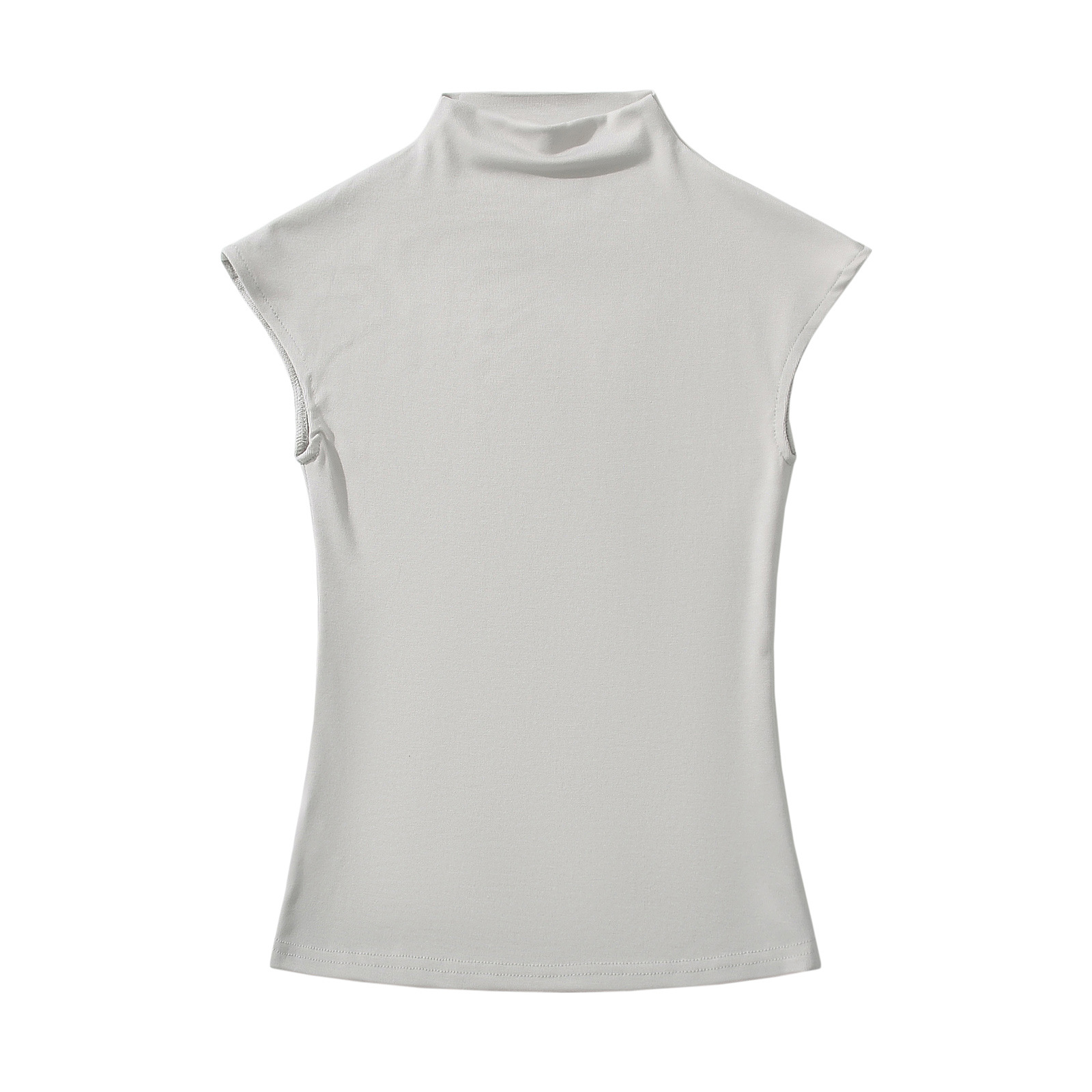 유럽과 미국 스타일의 여름 섹시한 스파이스 소녀 절반 높은 목 작은 비행 소매 스트레치 타이트베이스 티셔츠 슬림 핏 슬림 탑스토어 가기