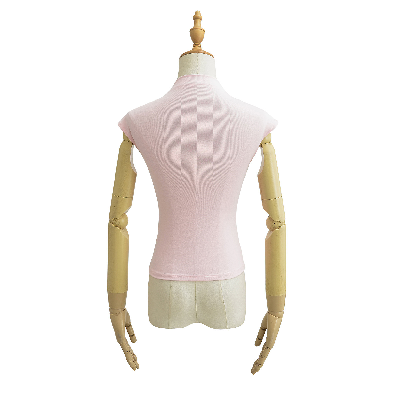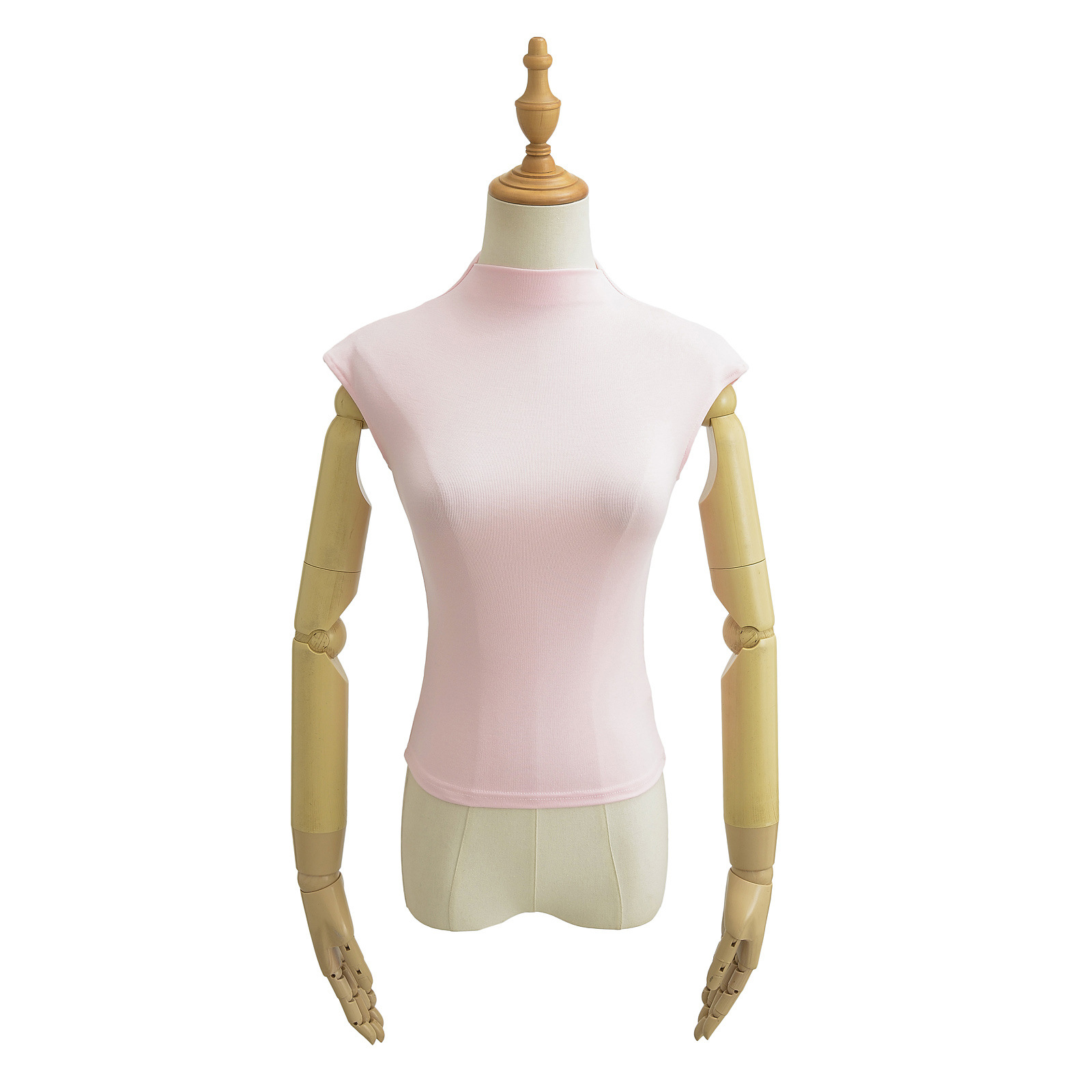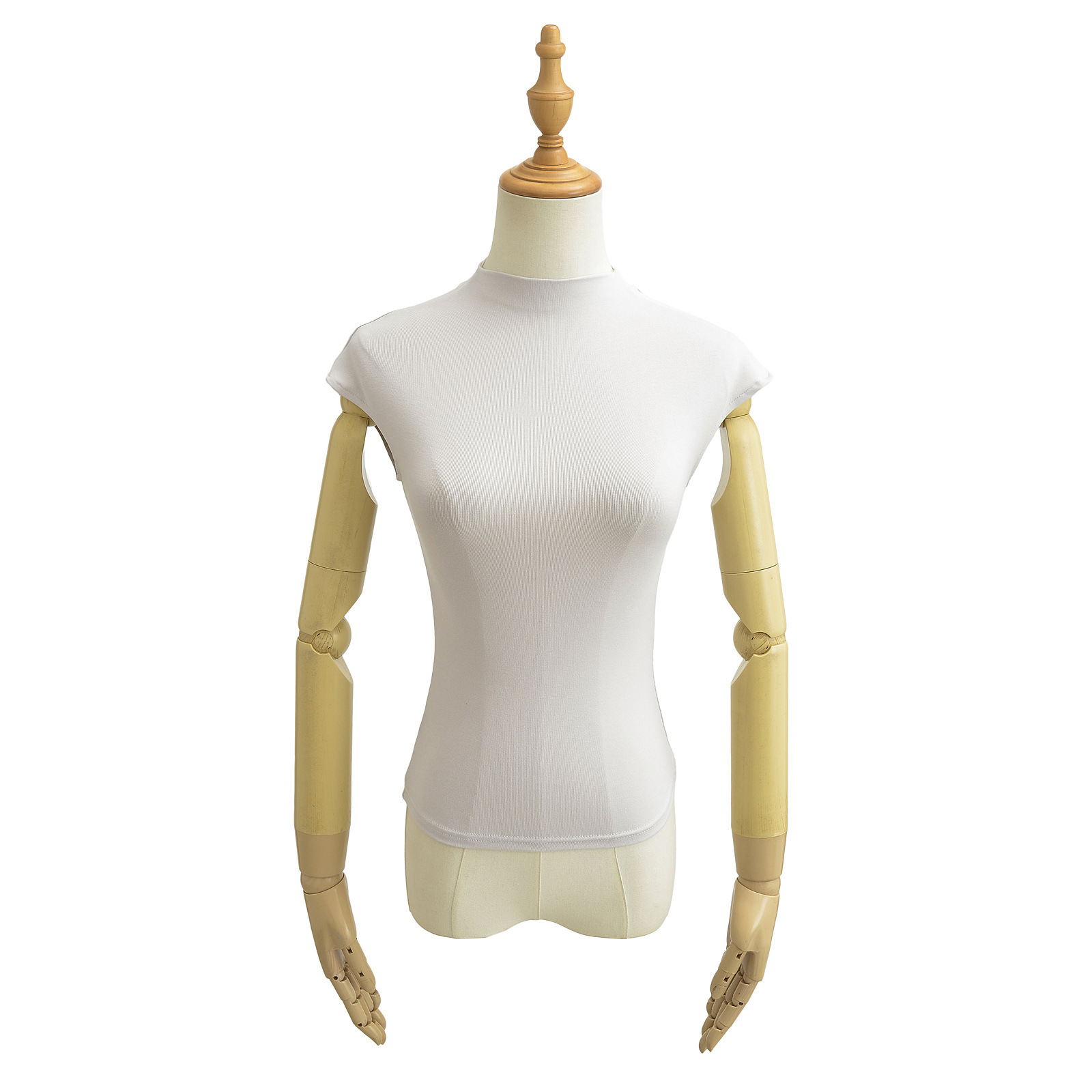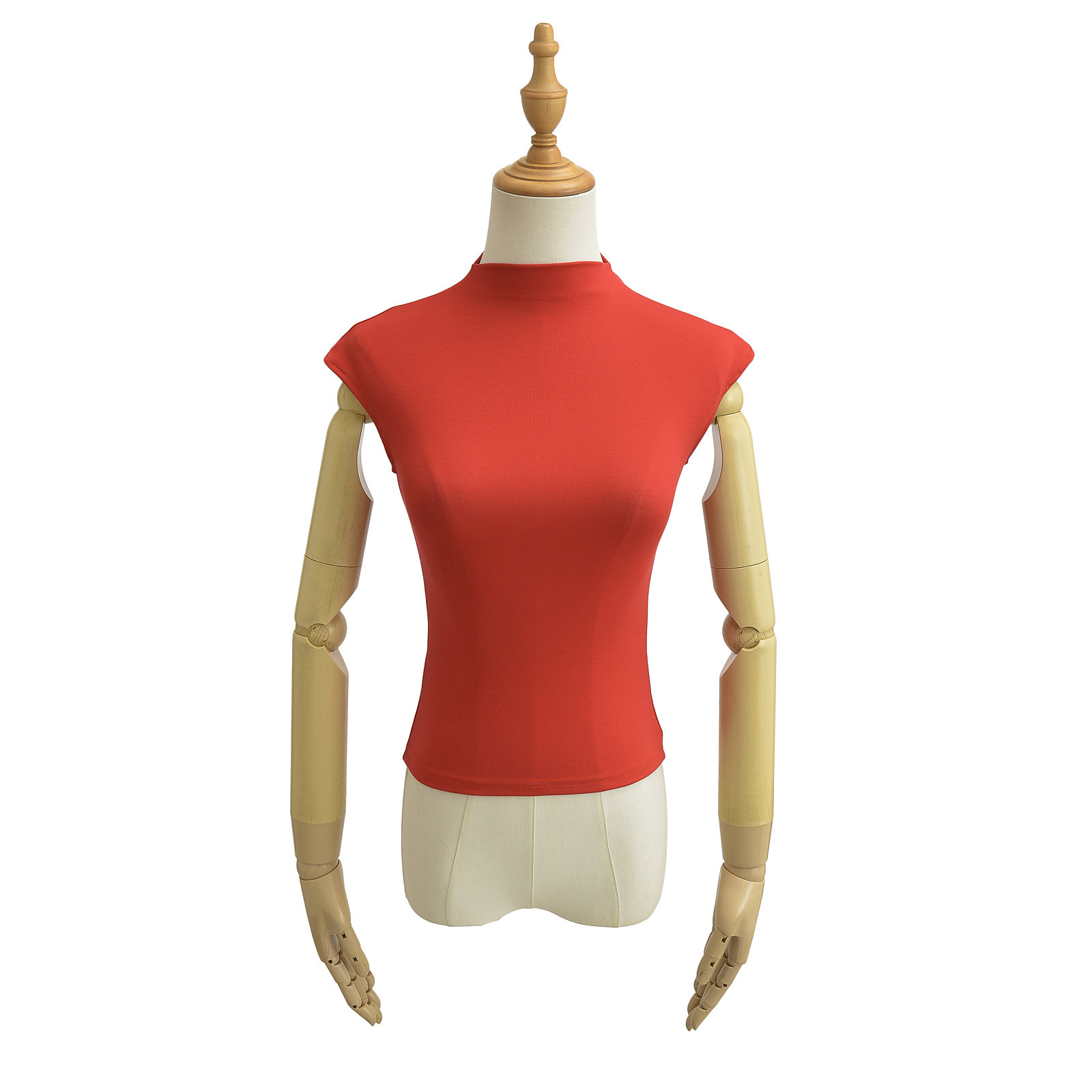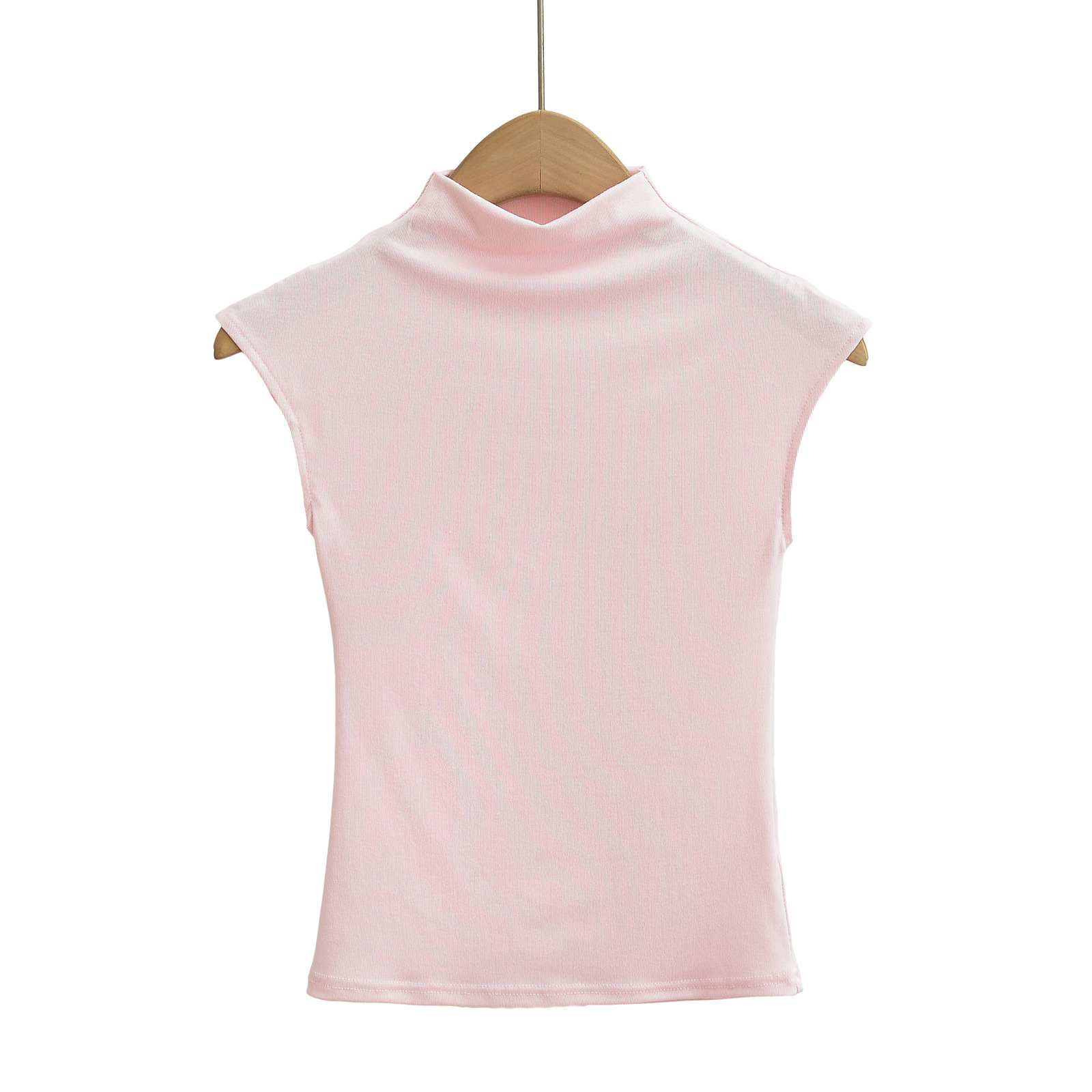 유럽과 미국 스타일의 여름 섹시한 스파이스 소녀 절반 높은 목 작은 비행 소매 스트레치 타이트베이스 티셔츠 슬림 핏 슬림 탑스토어 가기
