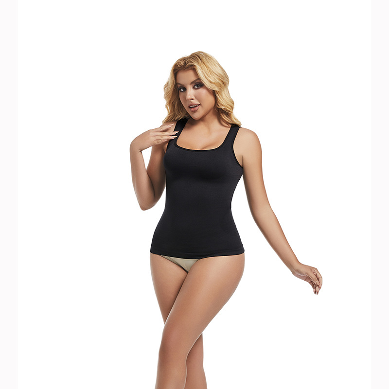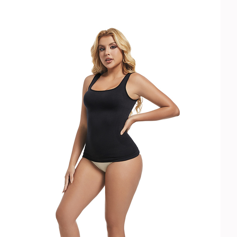 여성을위한 국경 간 핫 세일 높은 탄성 벨리 턱걸이 두꺼운 스퀘어 칼라 원활한 조끼스토어 가기