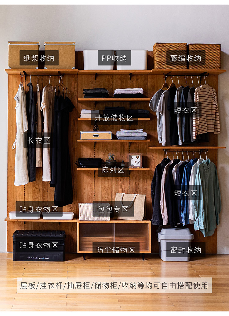9C 없음 모든 벽 교수형 코트 선반 바닥 오픈 옷장 입구 침실 보관 매달려 옷 벽 단단한 나무 보관스토어 가기