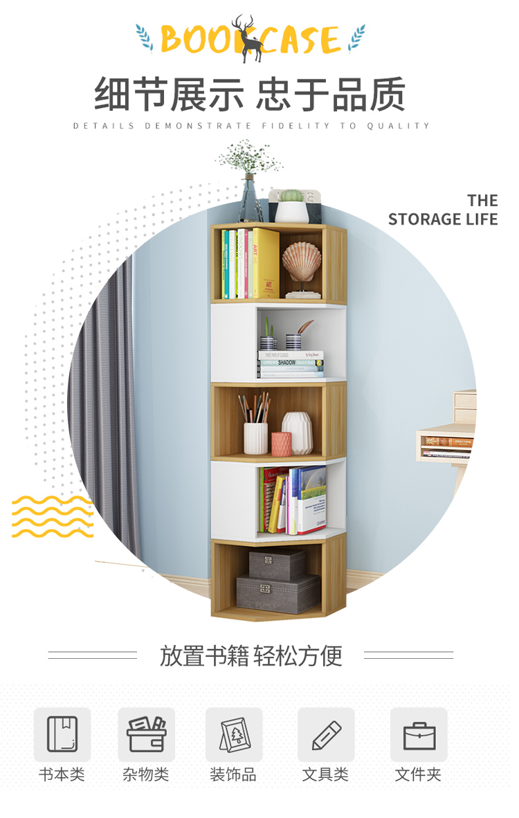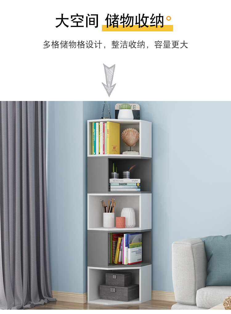 9C 삼각형 바닥 저장 캐비닛 간단한 코너 저장 랙 코너 책장 간단하고 간단한 현대 책장 코너 캐비닛