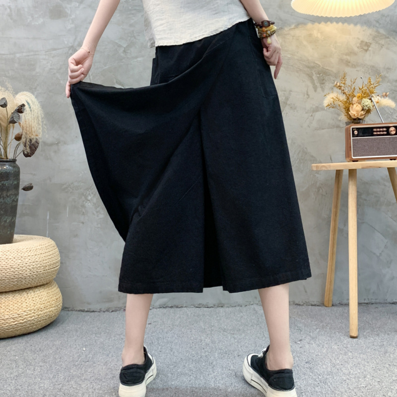 2024 여름 얇은 플러스 사이즈 높은 허리 느슨한 캐주얼 바지 통통녀 mm 살을 덮고있는 넓은 다리 자른 바지 스커트