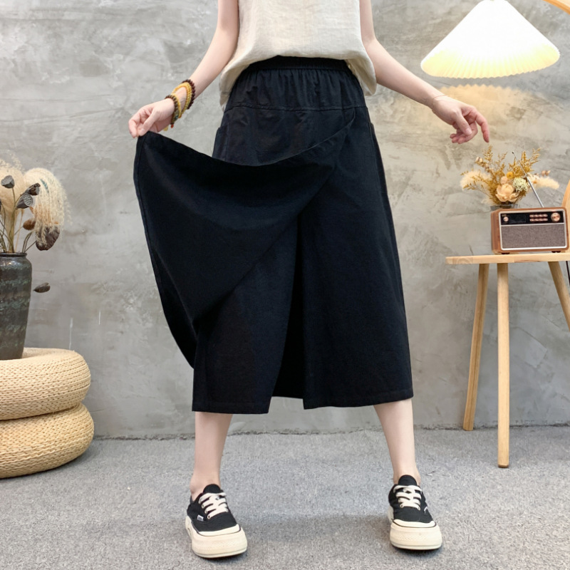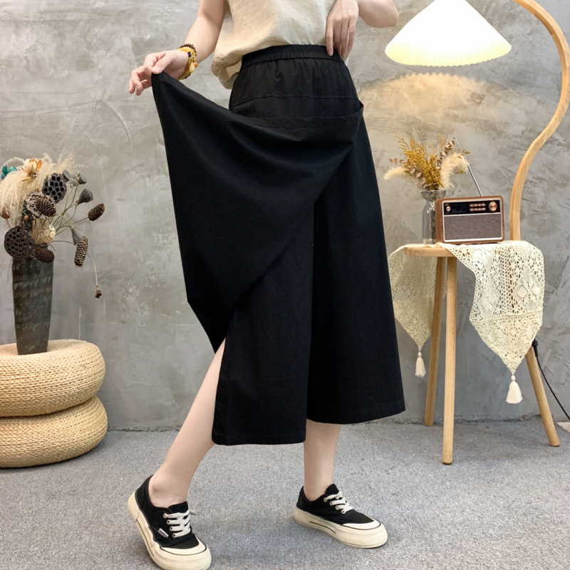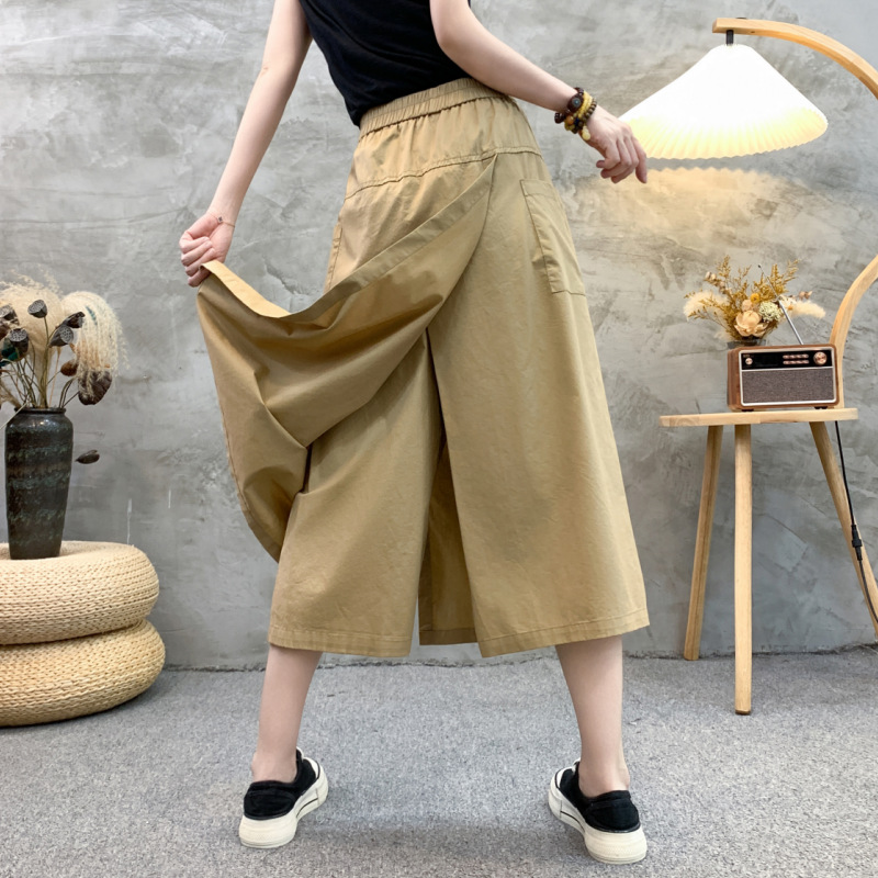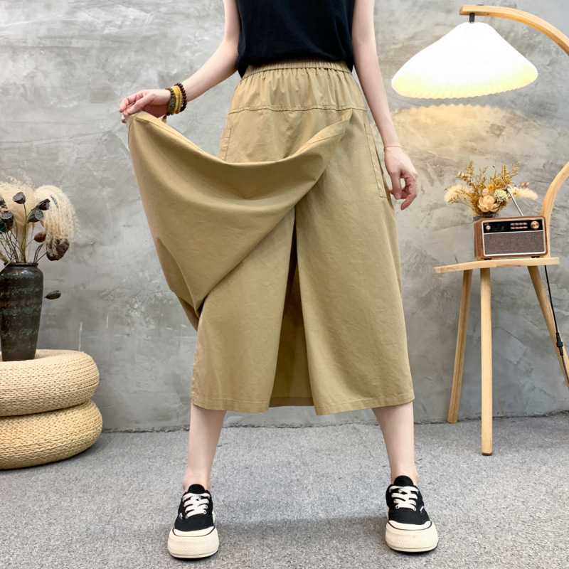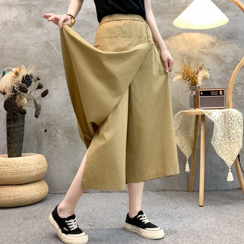 2024 여름 얇은 플러스 사이즈 높은 허리 느슨한 캐주얼 바지 통통녀 mm 살을 덮고있는 넓은 다리 자른 바지 스커트스토어 가기