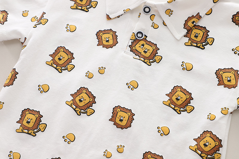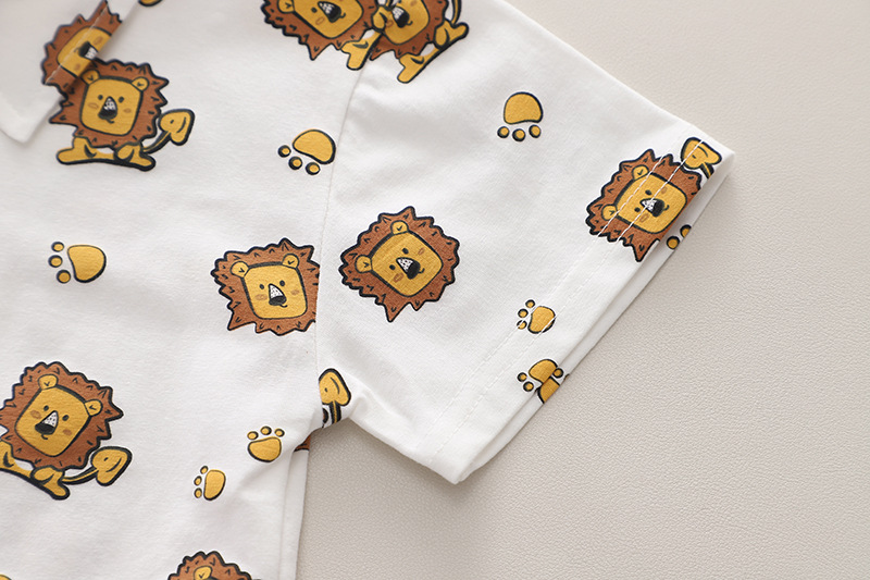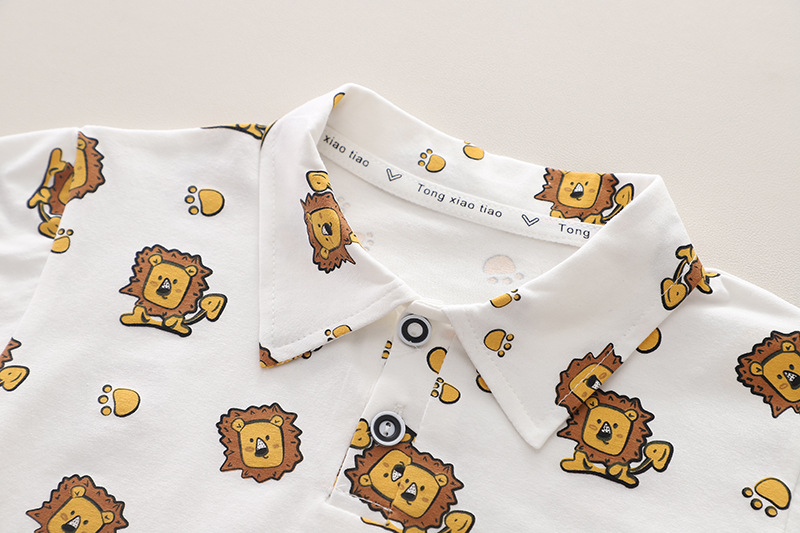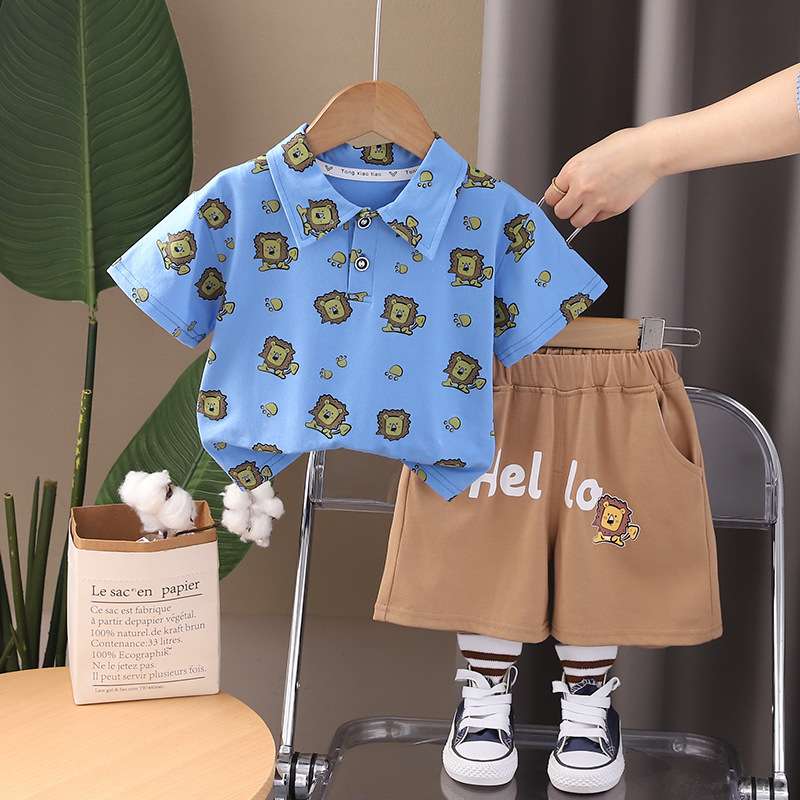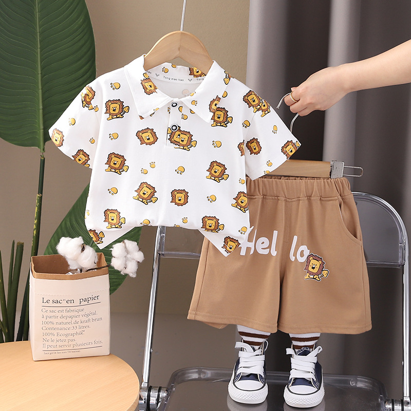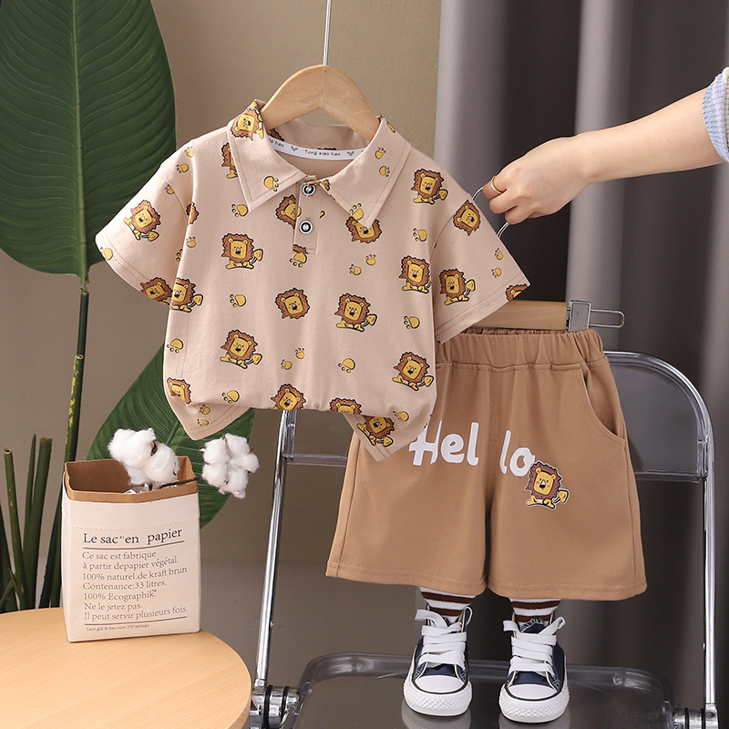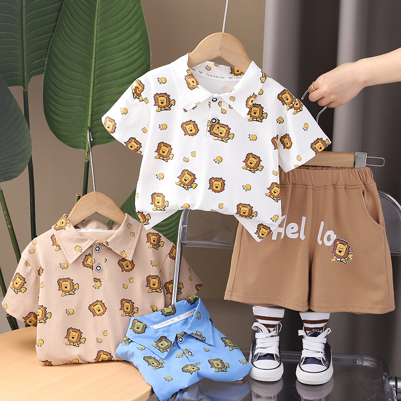 2024 여름 아동복 사자 옷깃 폴로 셔츠 짧은 소매 여름 의류 소년 투피스 반바지 어린이 세트 여름 의류스토어 가기