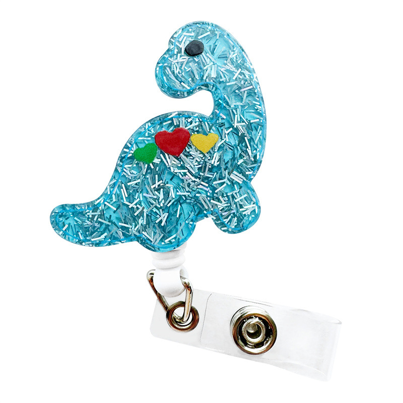 재고 아크릴 반짝이 뇌 해바라기 배지 릴 개폐식 ID 버클 안티 손실 도난 방지 키 체인스토어 가기