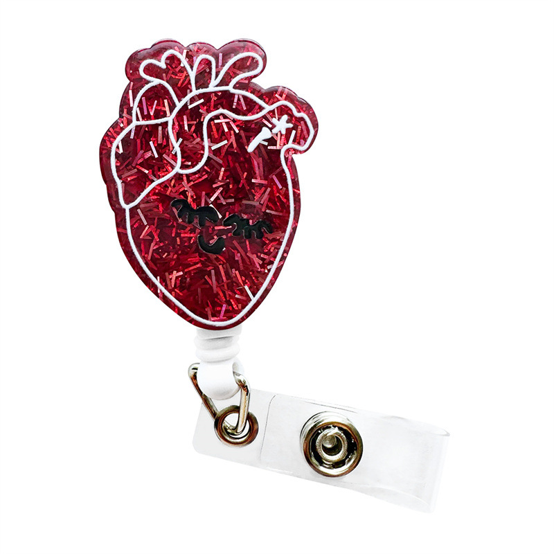 재고 아크릴 반짝이 뇌 해바라기 배지 릴 개폐식 ID 버클 안티 손실 도난 방지 키 체인
