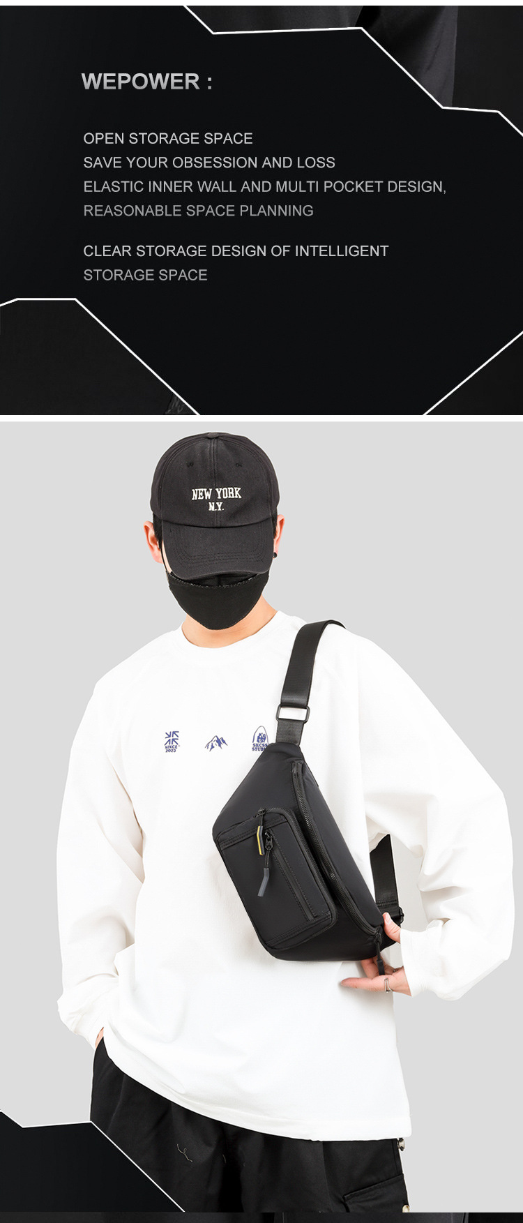 멀티 포켓 경량 캐주얼 긴 벨트 튼튼한 남자 허리 가방 스포츠 대용량 여행 가슴 가방 다기능 남자 가방