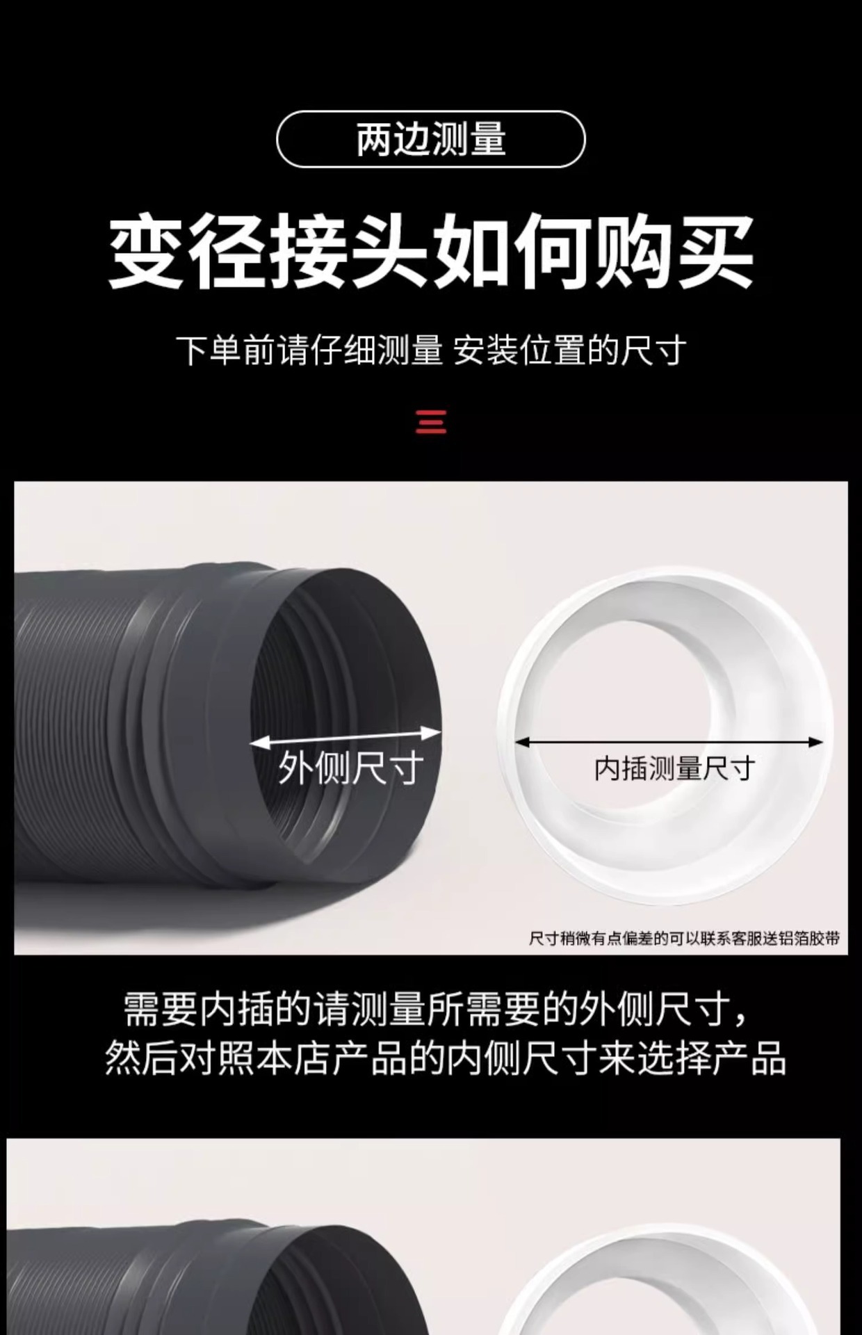 가변 조인트 감속기 배기 파이프 연기 파이프 가변 직경 링 pvc 수도관 피팅 파이프 변환 100 ~ 75 ~ 50