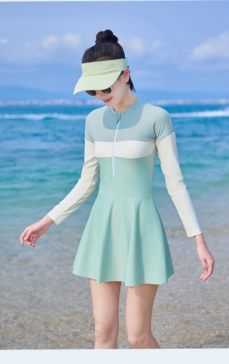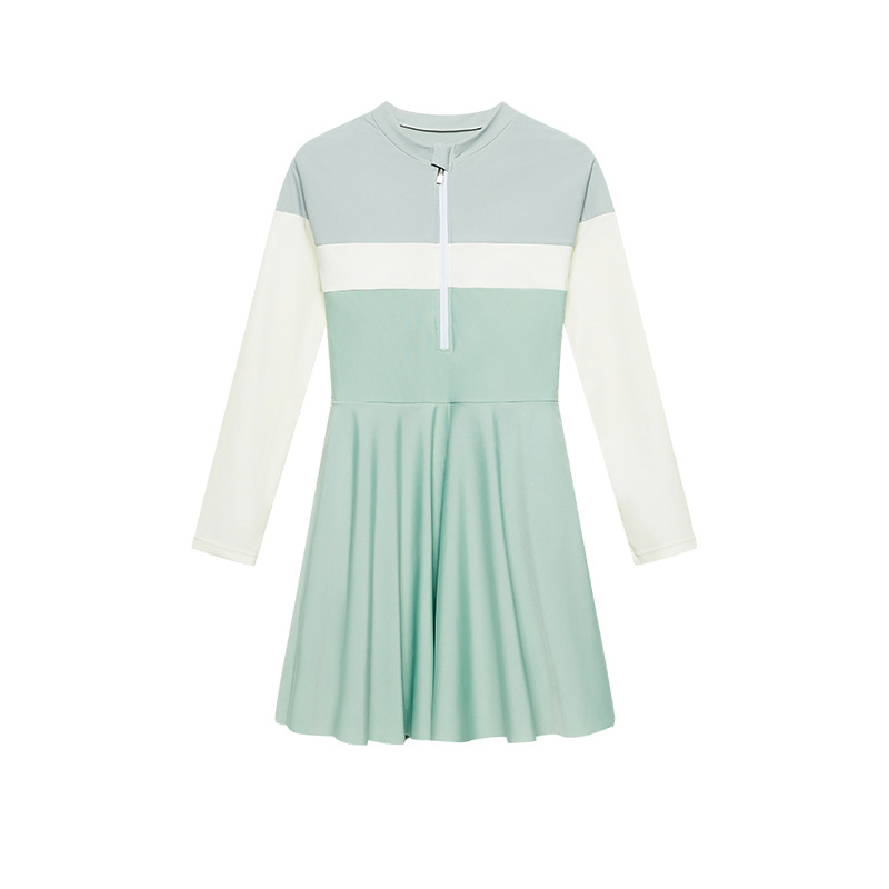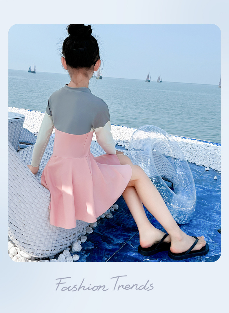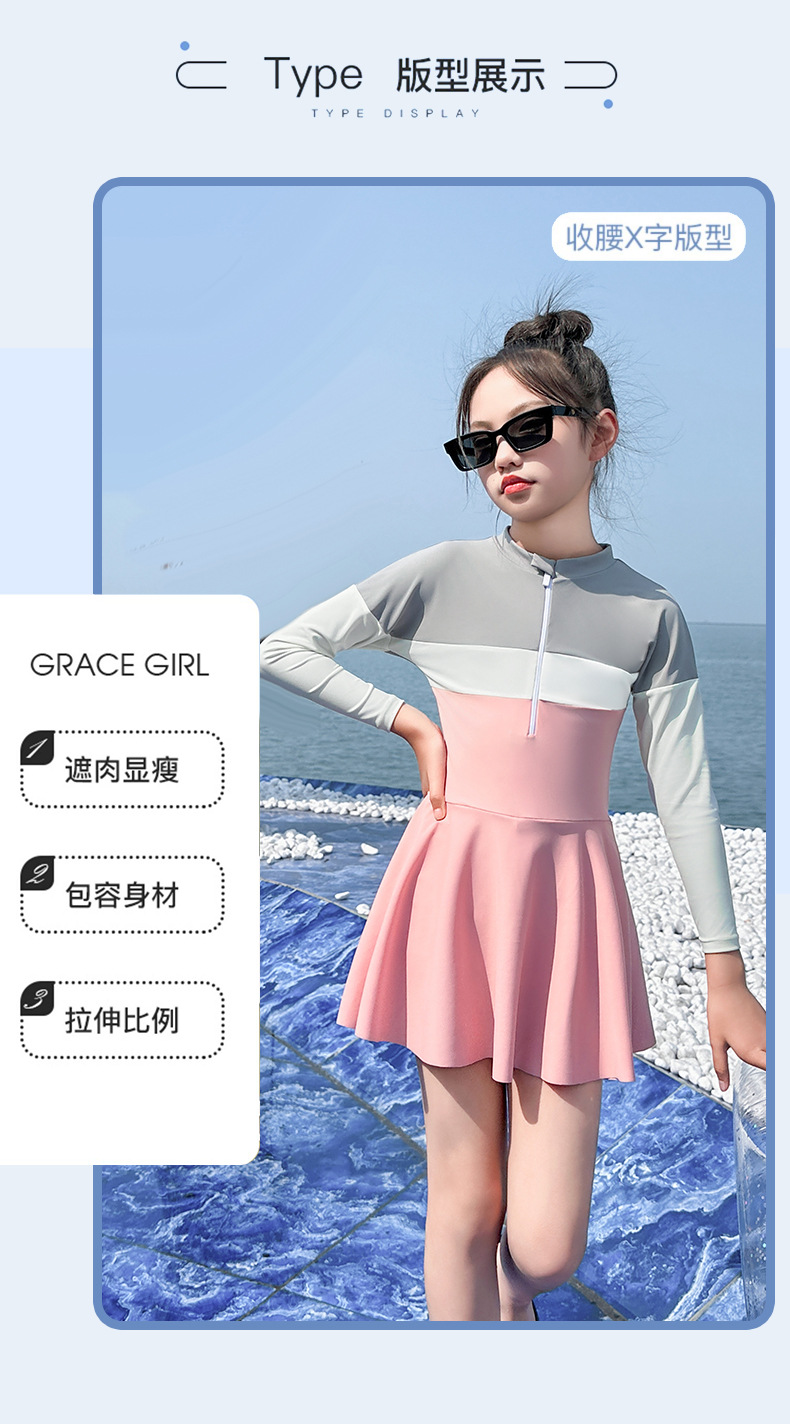 수영복 어린이 여성용 긴팔 선 스크린 스포츠 수영복 큰 어린이 수영복 소녀 4-15 세 원피스 일반 색상