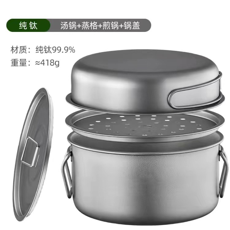 순수 티타늄 TA1 야외 프라이팬 시리즈 수프 팬 프라이드 계란 수프 캠핑 피크닉 조리기구 세트 캠핑 용품스토어 가기