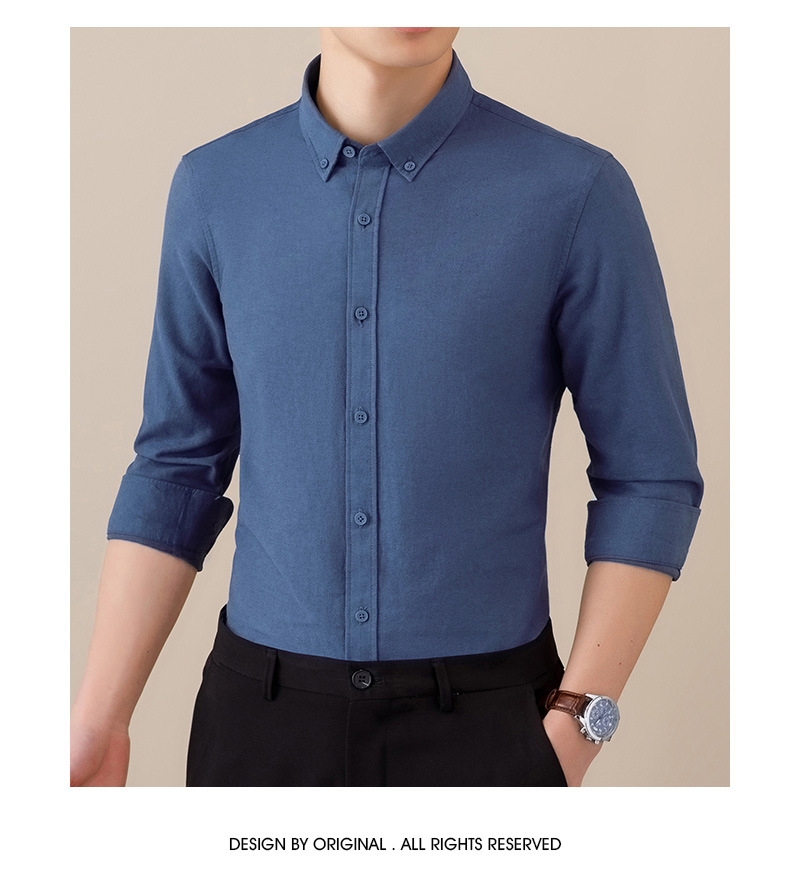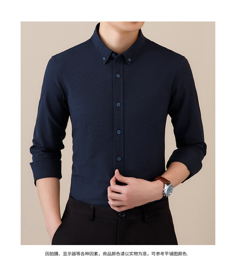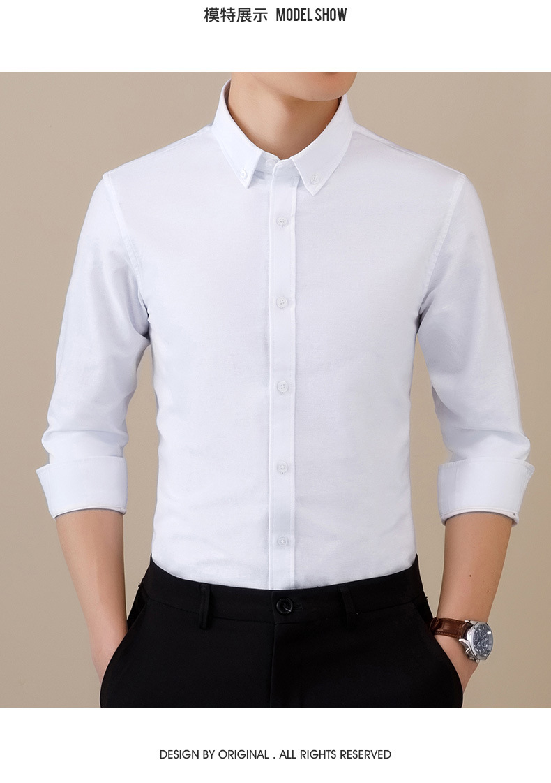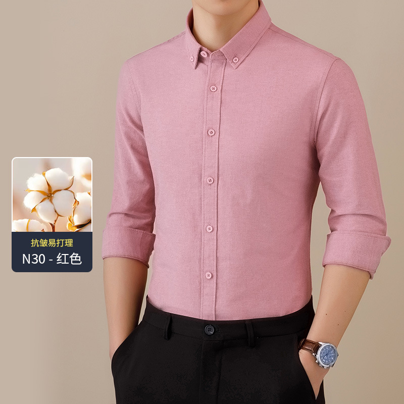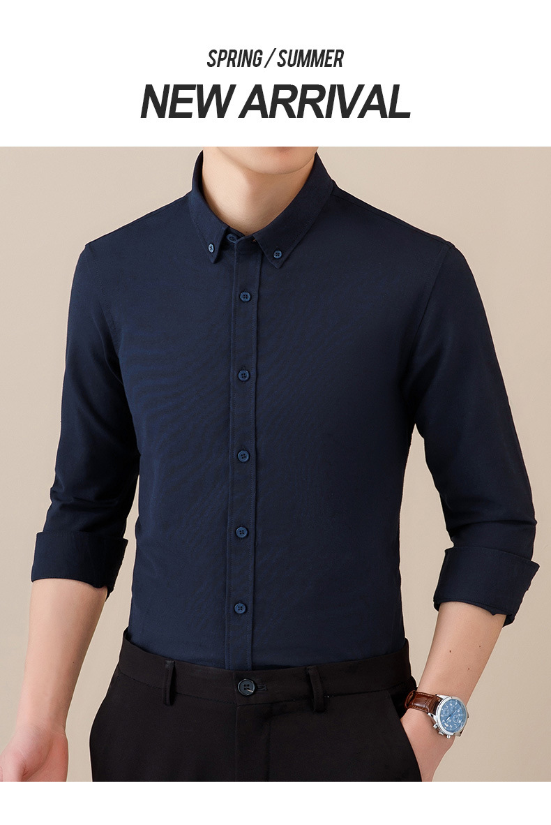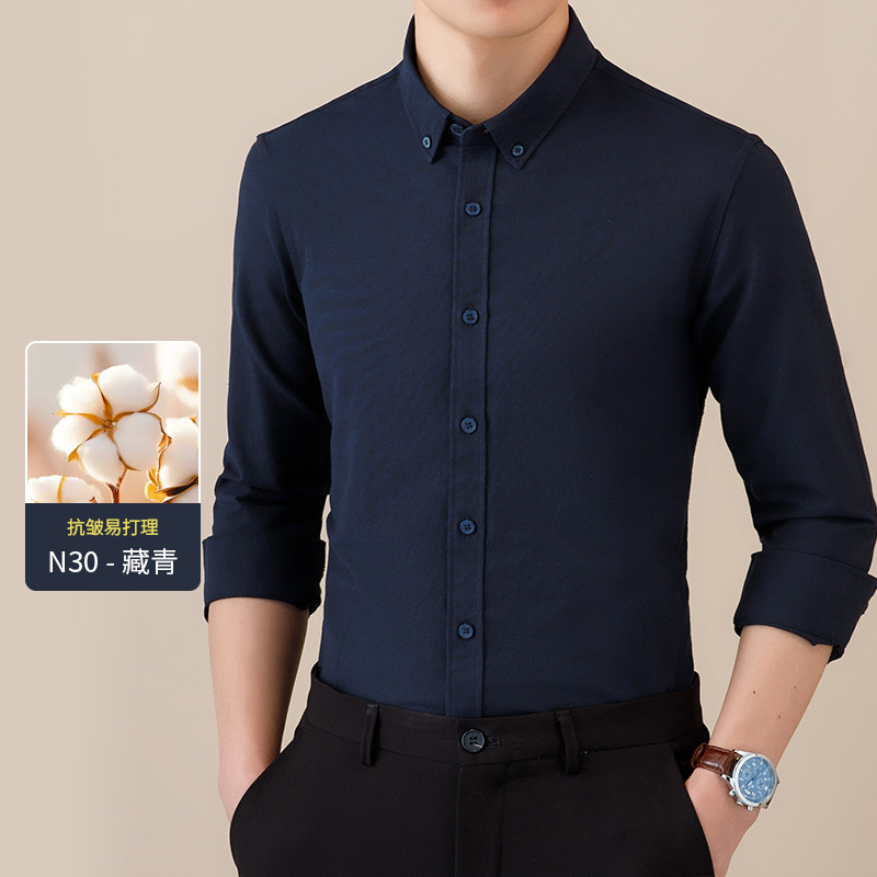 봄과 가을 씻어 옥스포드 긴팔 셔츠 남성용 단색 주름 방지 이지 케어 셔츠 캐주얼 비즈니스 작업복