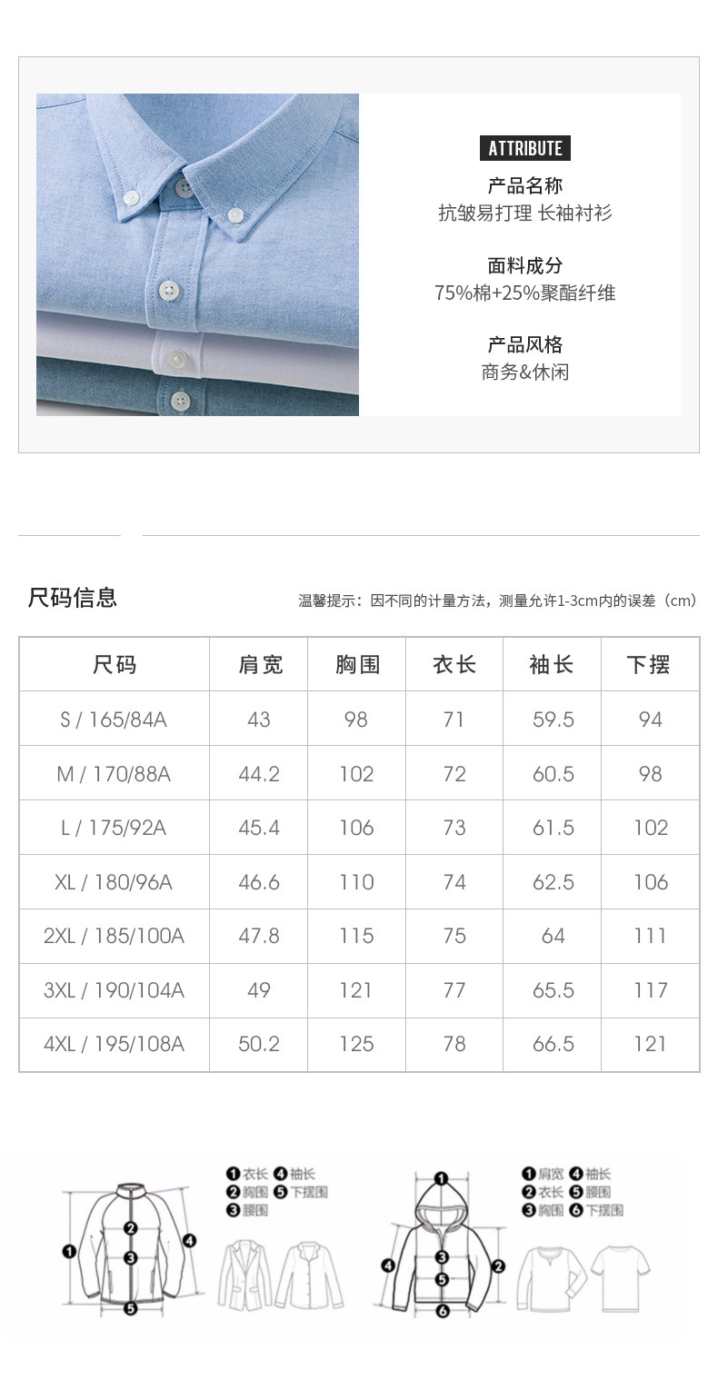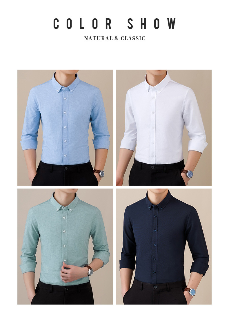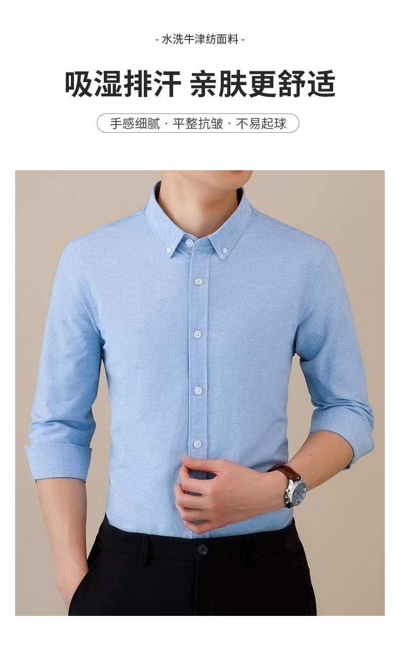 봄과 가을 씻어 옥스포드 긴팔 셔츠 남성용 단색 주름 방지 이지 케어 셔츠 캐주얼 비즈니스 작업복스토어 가기