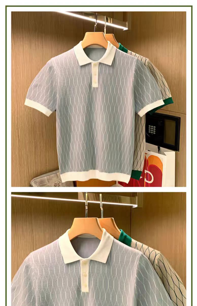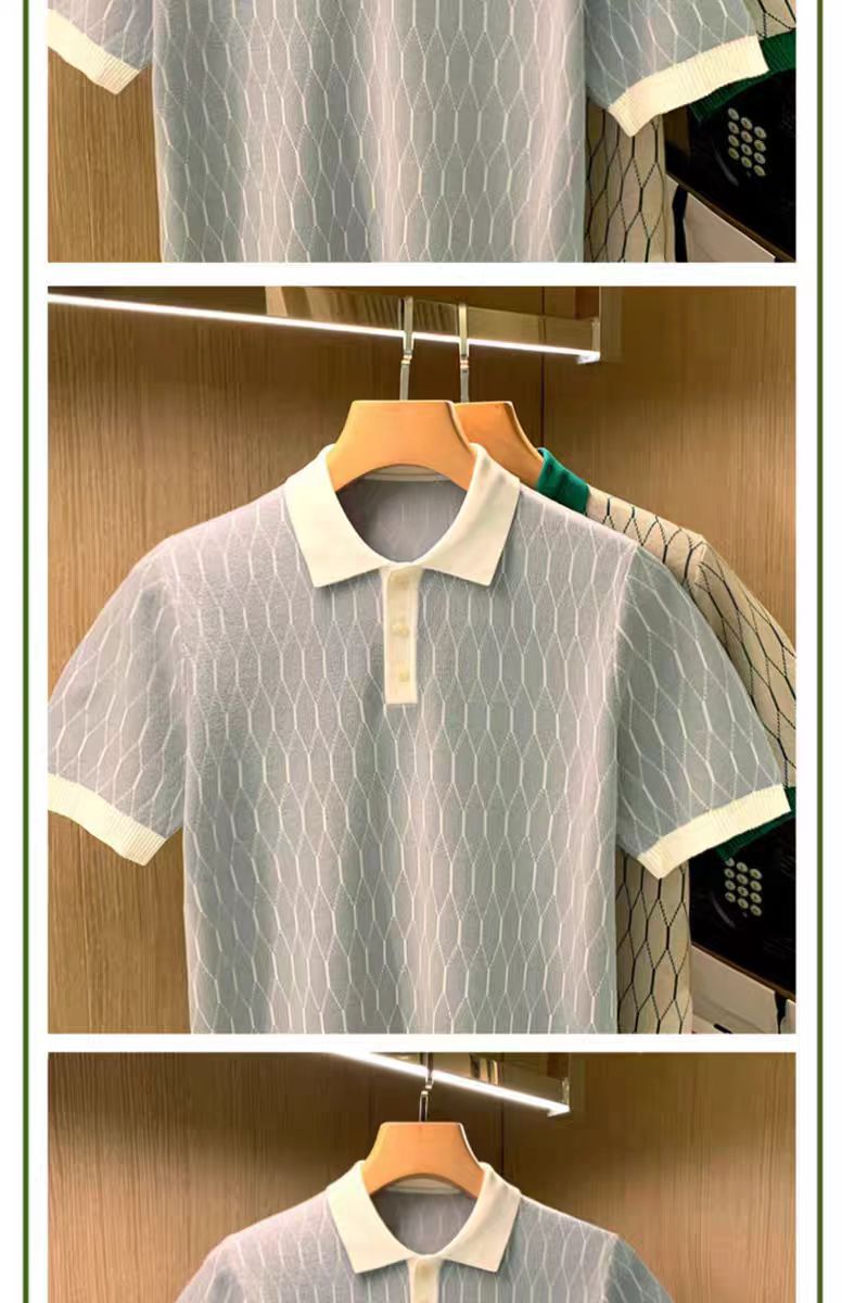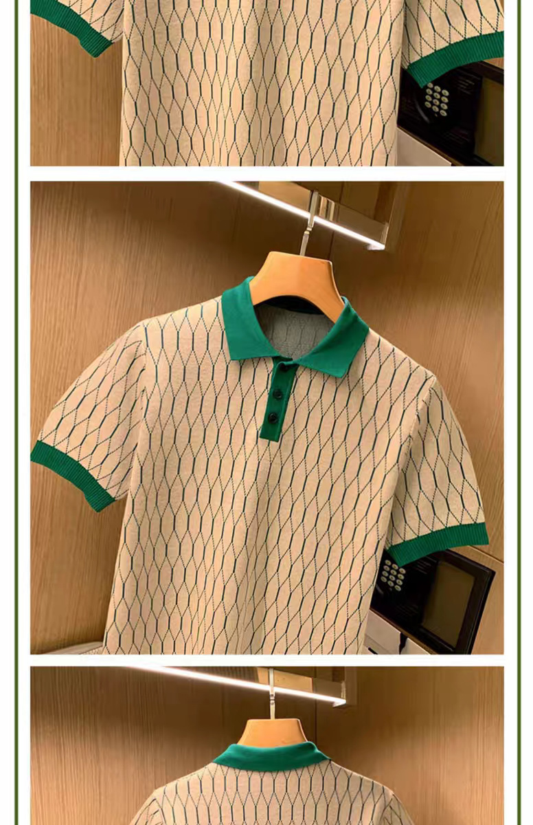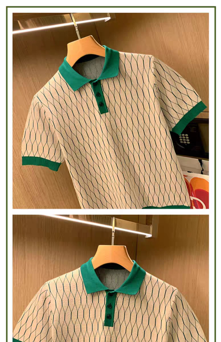 영국 비즈니스 캐주얼 패션 남성 반팔 티셔츠 여름 새로운 고급 Rhomboid 옷깃 최고 폴로 셔츠스토어 가기