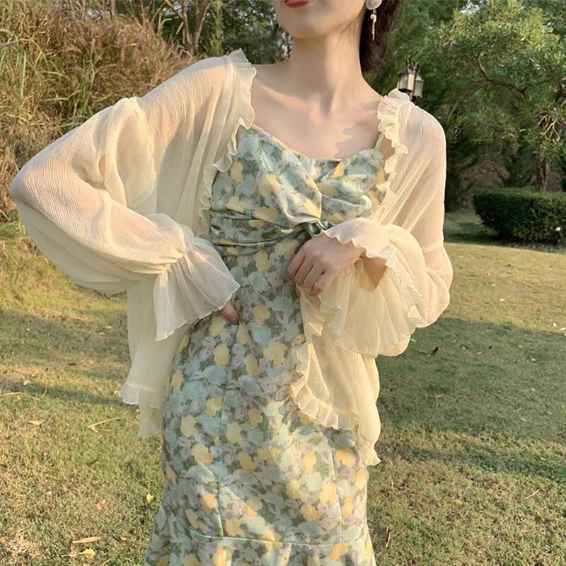 2024 여름 얇은 긴팔 쉬폰 탑, 스트랩 스커트 아우터 숄코트 선스크린 여성용 카디건