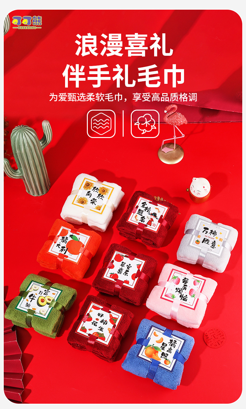 산호 양털 수건 손 선물 선물 반환 웨딩 타월 넥타이 카드 광장 일치하는 선물 상자 사탕 가게에 필요한스토어 가기