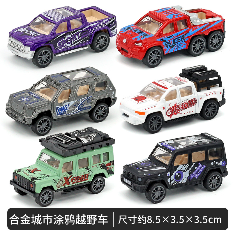 • 더 크고 두꺼워진】풀백 합금 시티 그래피티 오프로드 차량【6개입】