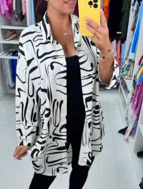 2024 아마존 국경 여름 유럽과 미국의 여성 의류, 새로운 패션 옷깃 긴 소매 캐주얼 프린트 셔츠 여성스토어 가기