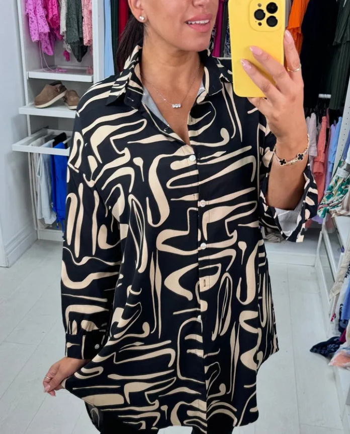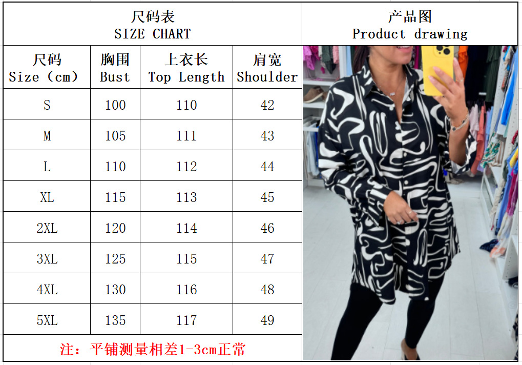 2024 아마존 국경 여름 유럽과 미국의 여성 의류, 새로운 패션 옷깃 긴 소매 캐주얼 프린트 셔츠 여성