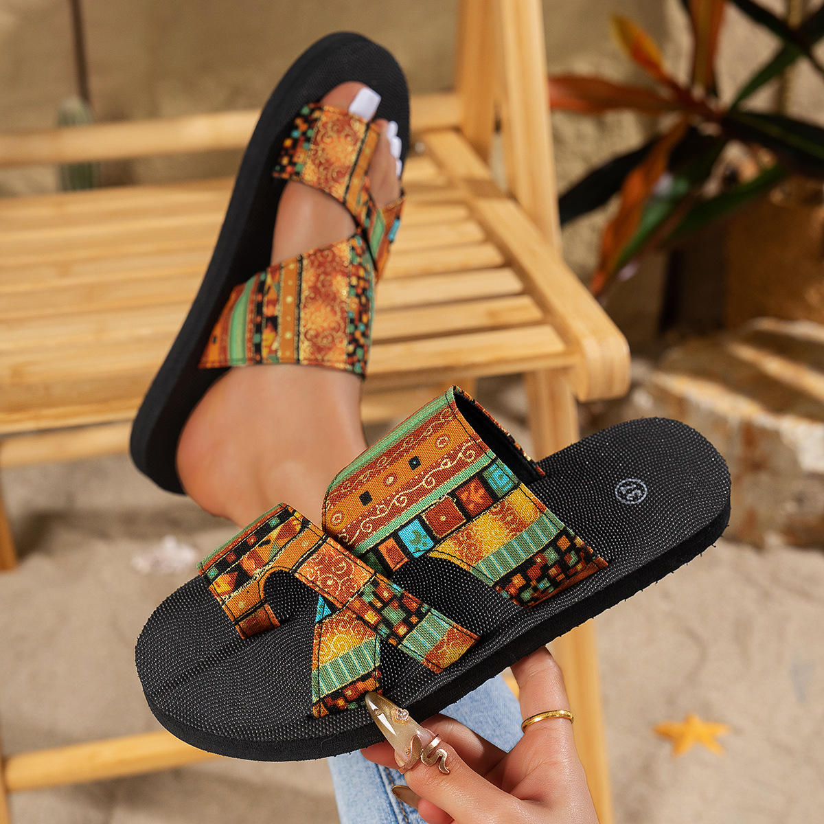 2024新款欧美时尚透气网布鱼嘴拖鞋防滑耐磨软底沙滩女拖鞋