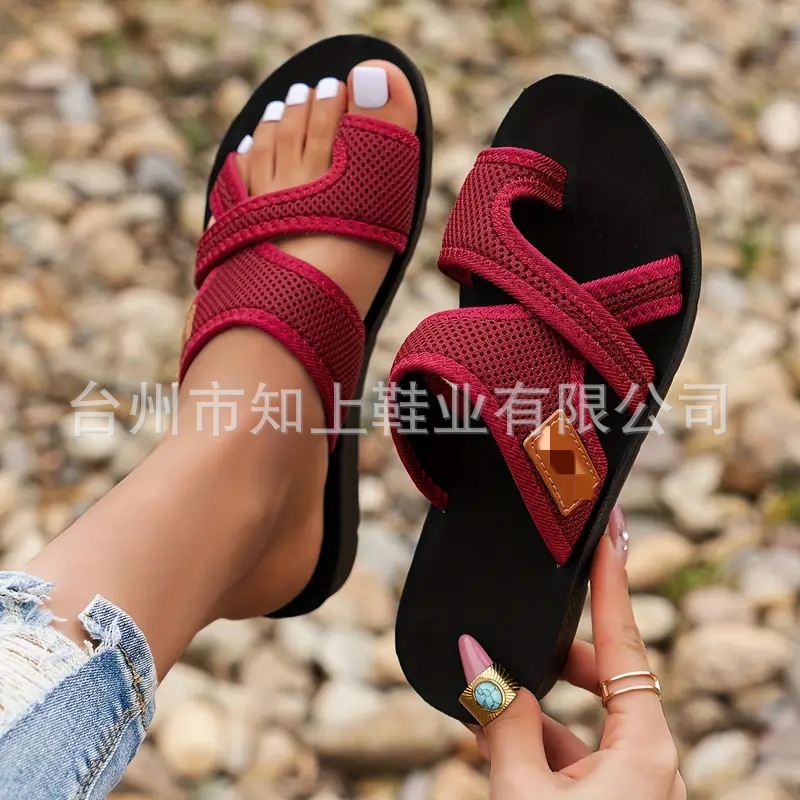 2024 새로운 유럽과 미국의 패션 통기성 메쉬 라운드 헤드 슬리퍼 플러스 사이즈 대외 무역 부드러운 바닥 비치 여성용 슬리퍼 36-43