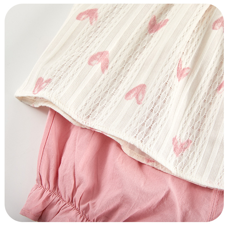 한국 스타일 유아복 여름옷 세트, 여자 아기 공주 하트 민소매 상의와 랜턴 팬츠 얇은 투피스 세트