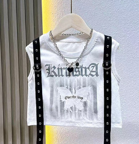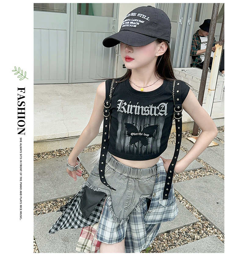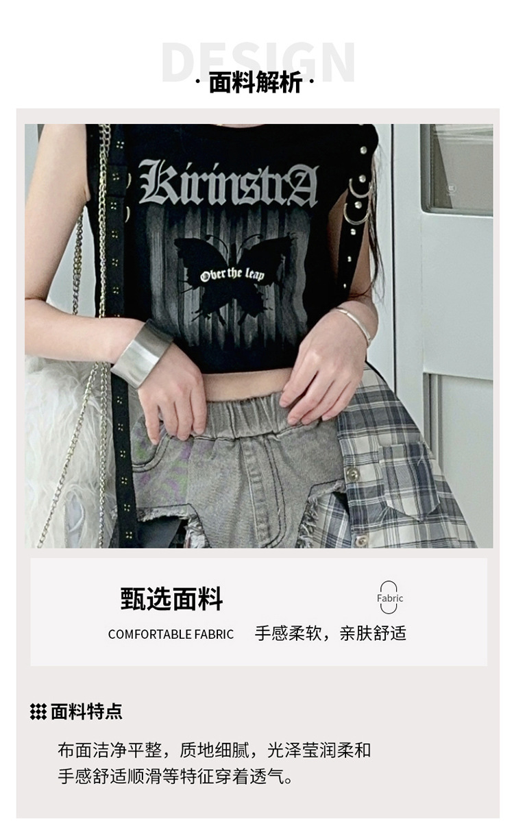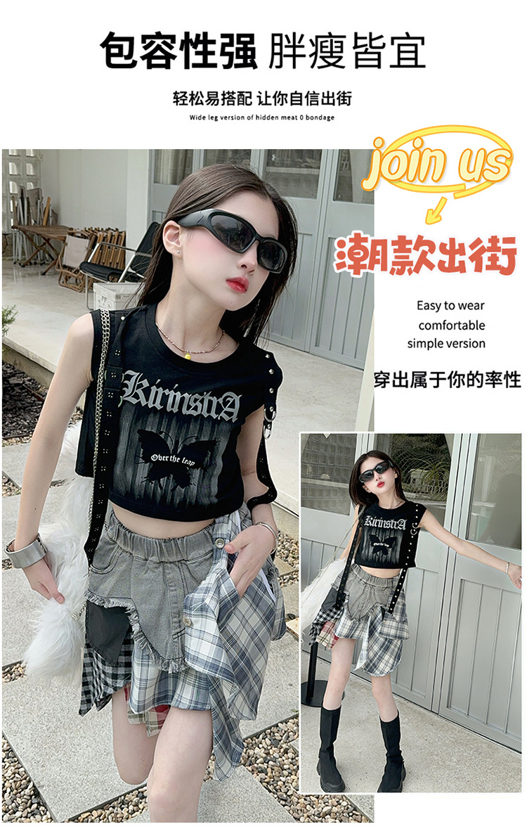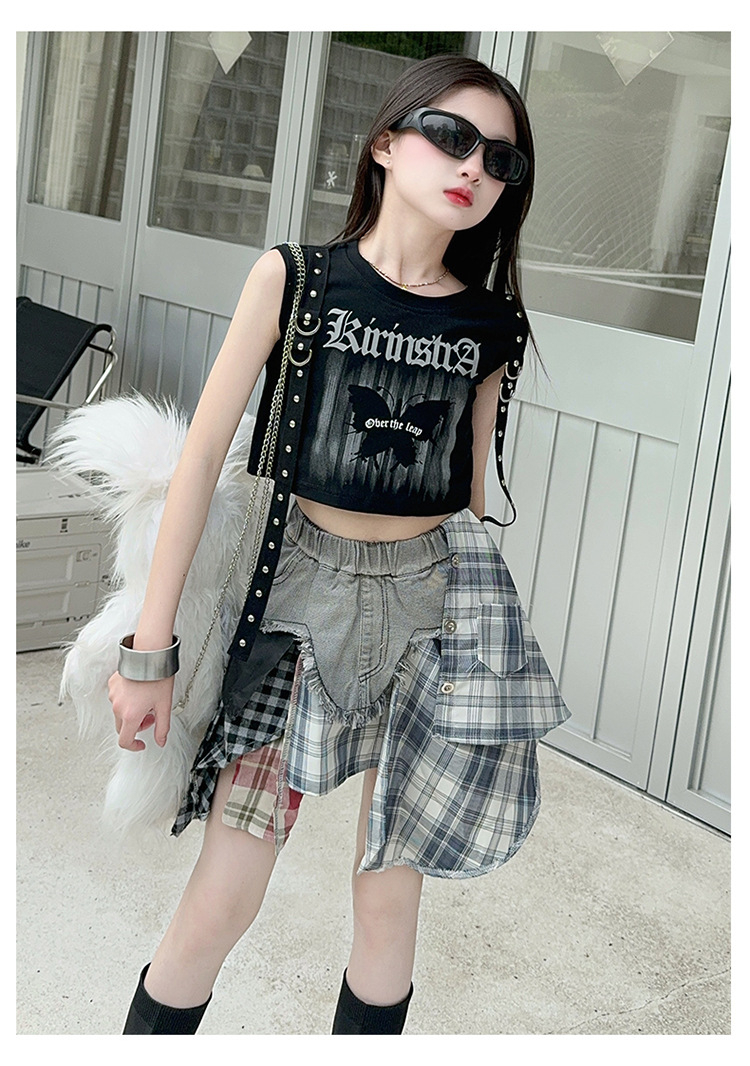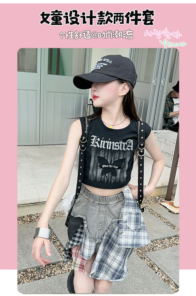 여자 2024 불규칙한 바느질 뜨거운 소녀 데님 스커트 스트리트 댄스 의상 공연 원피스 스커트 조끼 세트