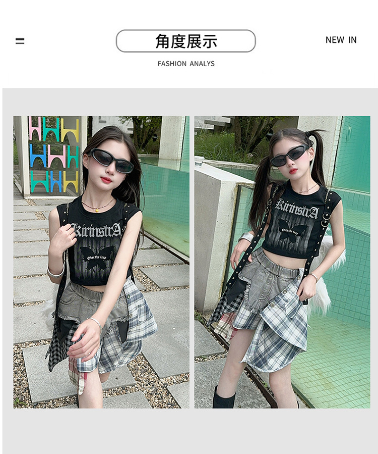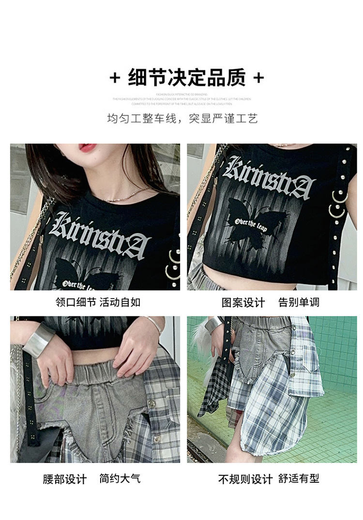 여자 2024 불규칙한 바느질 뜨거운 소녀 데님 스커트 스트리트 댄스 의상 공연 원피스 스커트 조끼 세트스토어 가기