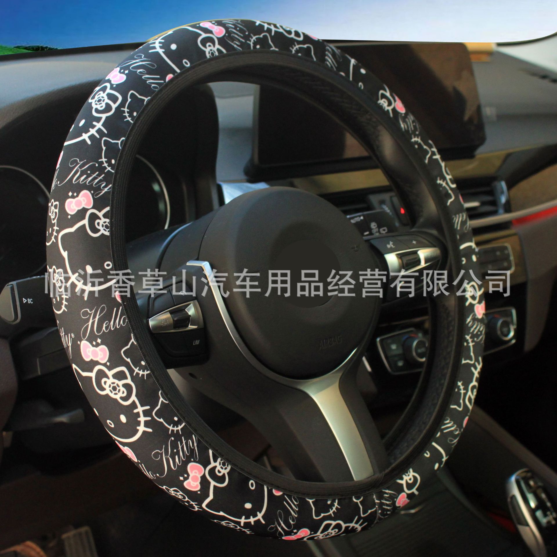 새로운 자동차 스티어링 휠 커버 블랙 KT 고양이 내부 링 탄성 밴드 탄성 자동차 핸들 커버 국경 전자 상거래 아마존스토어 가기