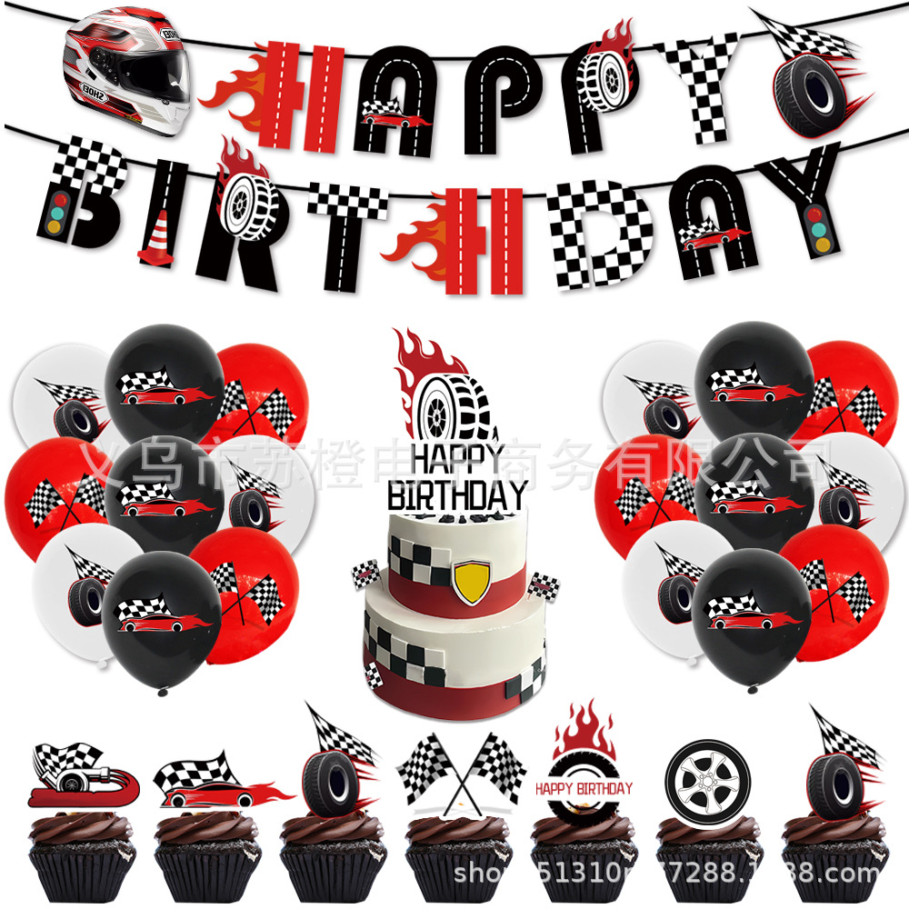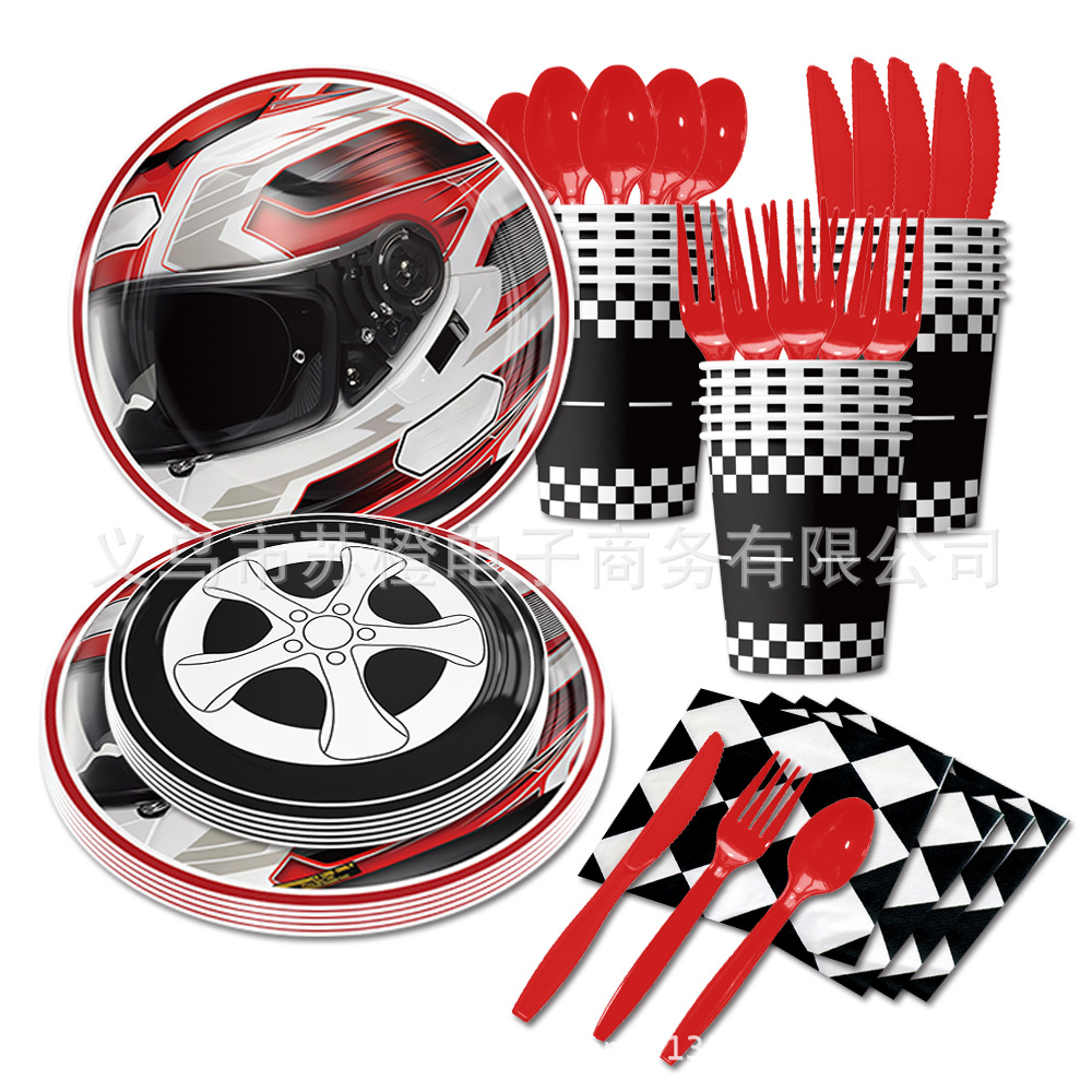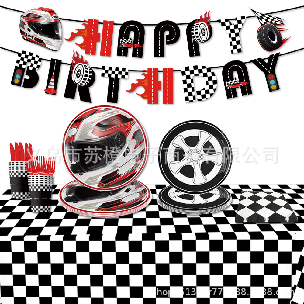 레이싱 테마 파티 용품 럭셔리카 로고 파티 장식 종이 트레이 테이블 천 종이 컵 배너 풍선 분위기 배열 용품스토어 가기