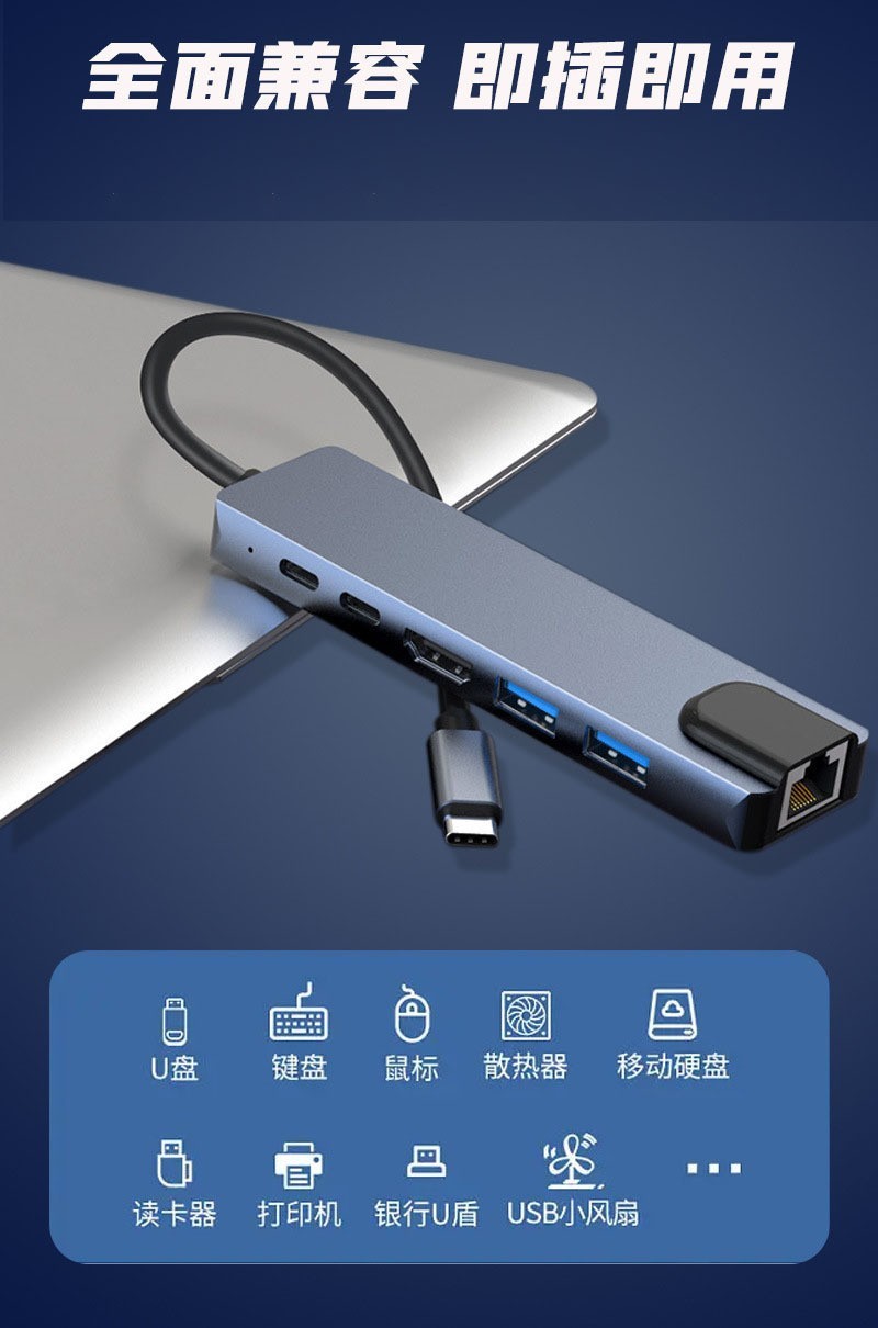 크로스보더 6-in-1 도킹 스테이션 Type-C to RJ45 100Mbps 네트워크 포트 컴퓨터 확장 도킹 스테이션 USB 허브 PD스토어 가기