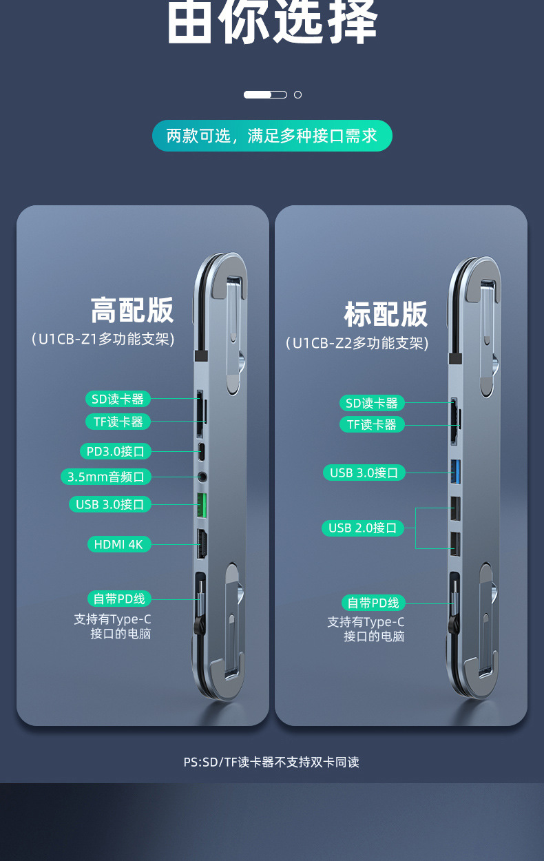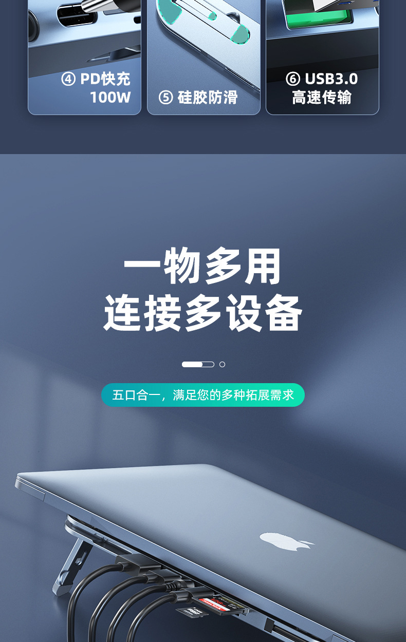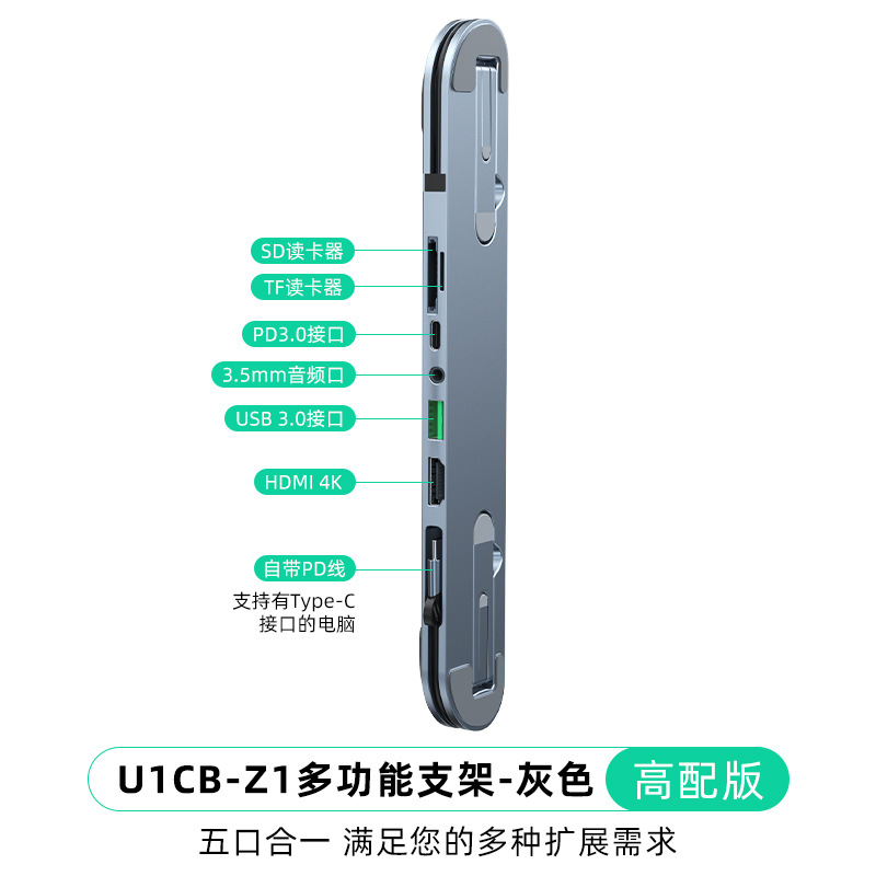 • 알루미늄 합금 표준 버전 브래킷 도킹 스테이션(5-in-1) 회색 모델