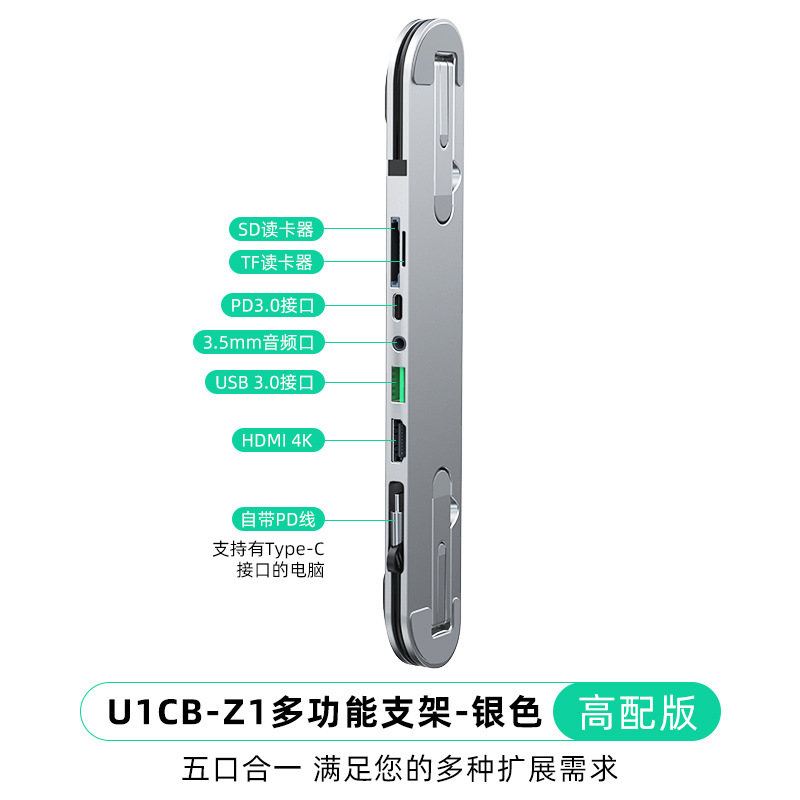 • 알루미늄 합금 표준 버전 브래킷 도킹 스테이션(5-in-1) 실버 모델
