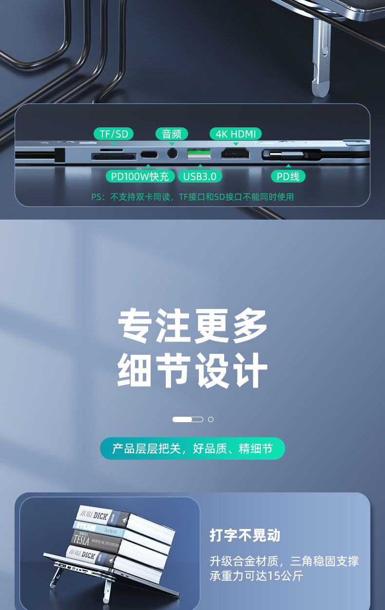 노트북 스탠드 USB C 타입 C 도크 허브 허브 HDMI 카드 리더 USB3.0A스토어 가기