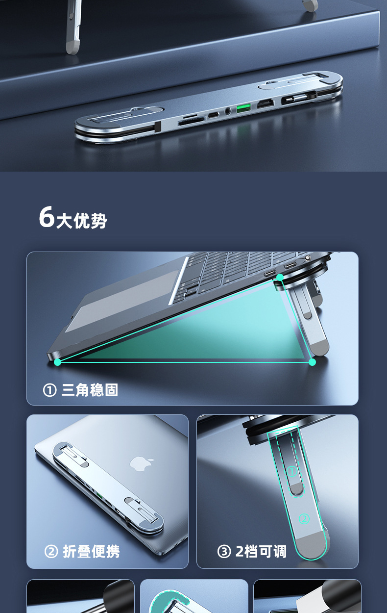 • 알루미늄 합금 고급 버전 브래킷 도킹 스테이션(6-in-1) 실버 모델