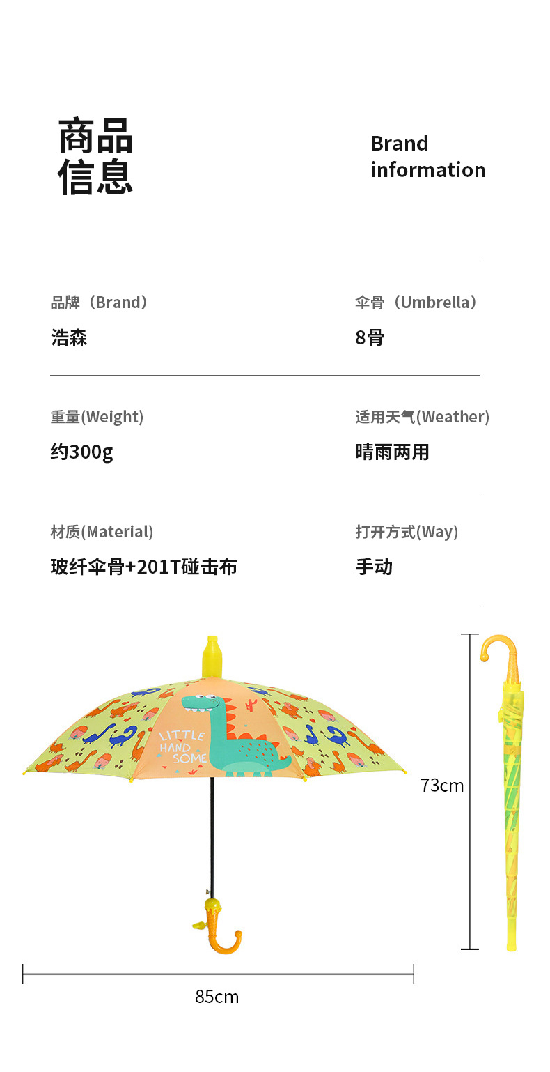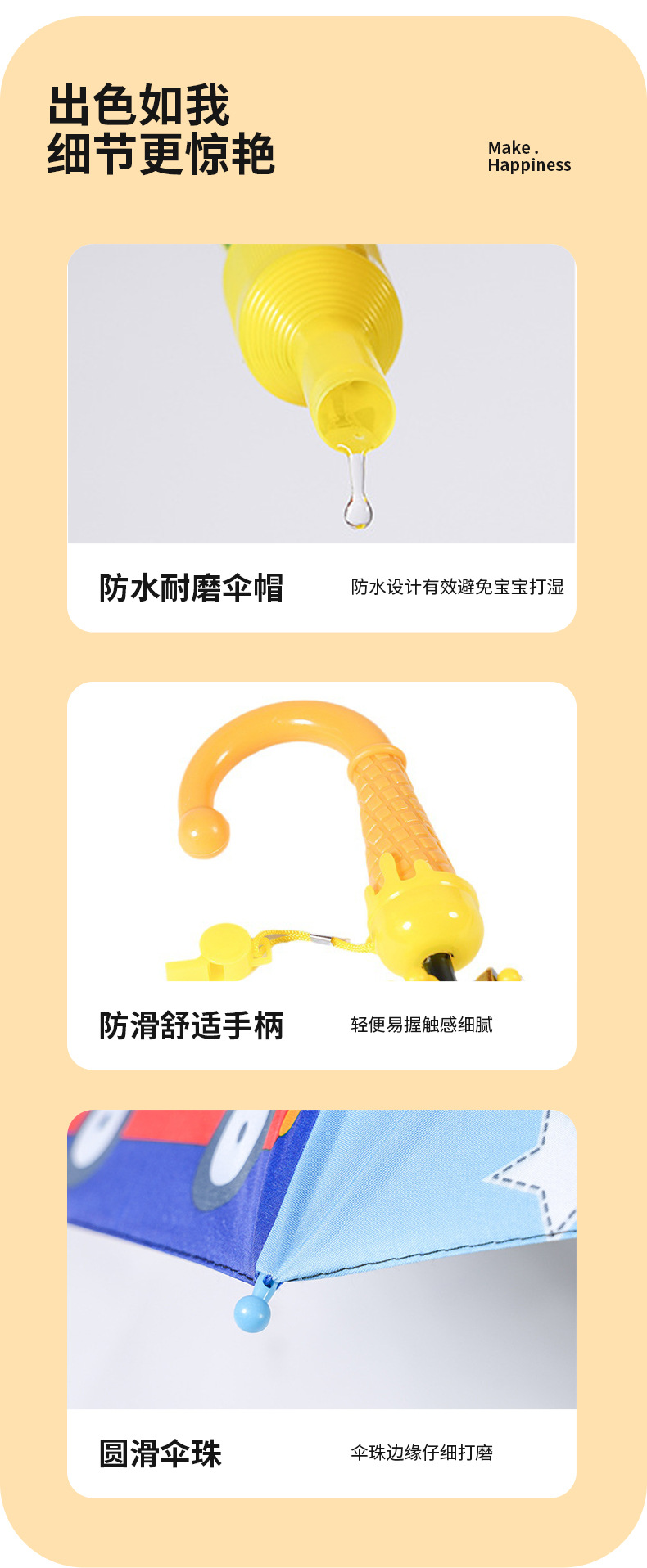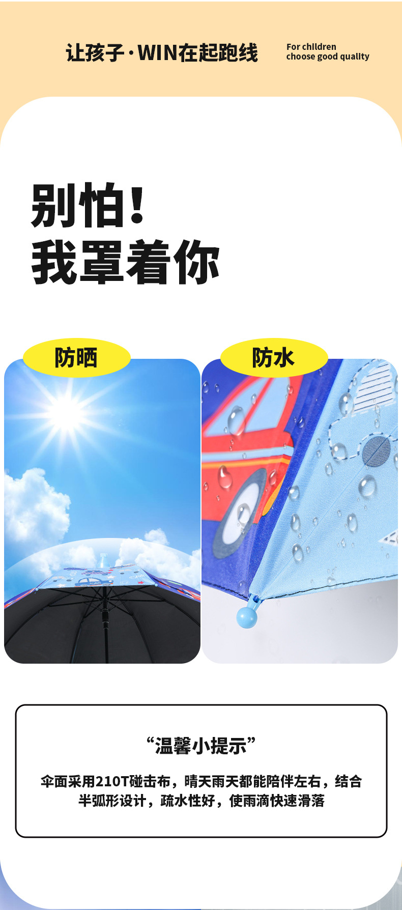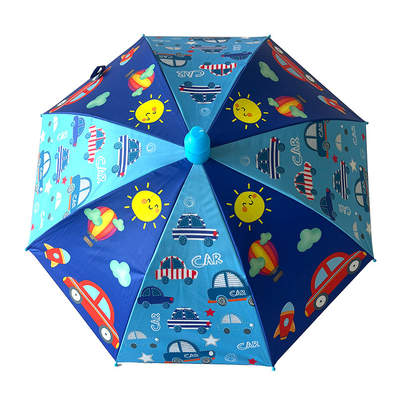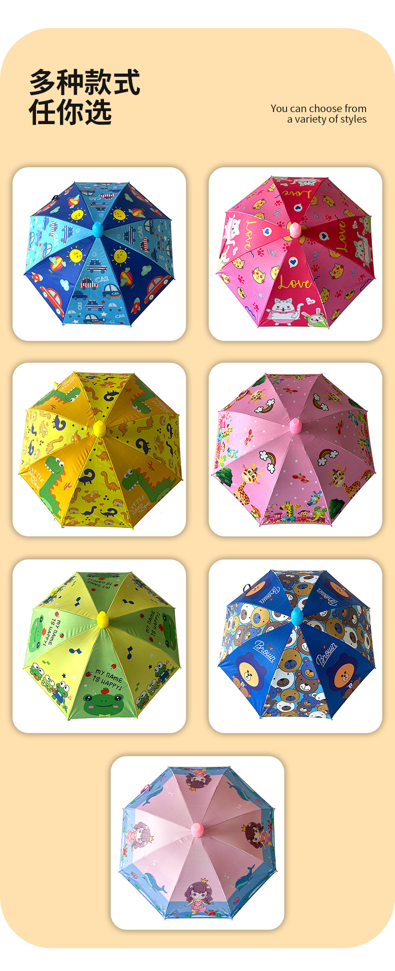 초등학생을위한 새로운 어린이 귀여운 우산 남학생과 여학생을위한 스트레이트 로드 휘슬 우산을 길게 처리합니다. 검은 고무 선 스크린 햇빛 우산