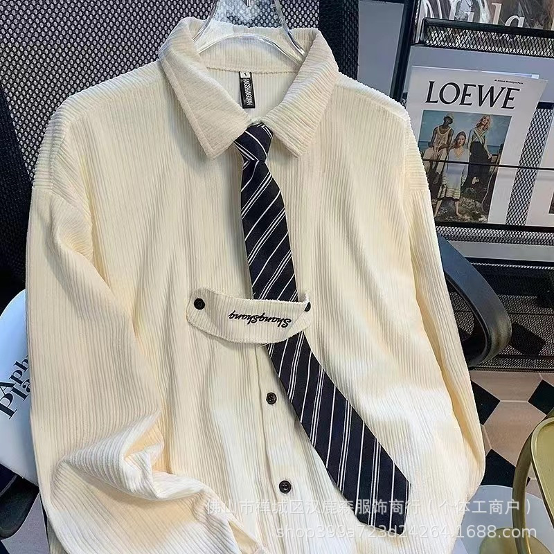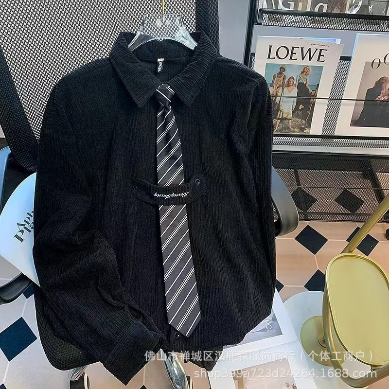 코듀로이 셔츠 남자의 긴 소매 봄과 가을 일본 유행 학생 캐주얼 자켓 유행 브랜드 넥타이 셔츠