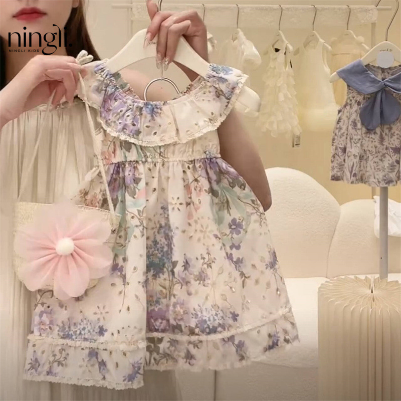 라임 소녀의 여름 프랑스 스타일 꽃 인쇄 원피스 여성의 보물 인쇄 민소매 원피스 원피스 공주 스타일 올 매치 원피스스토어 가기