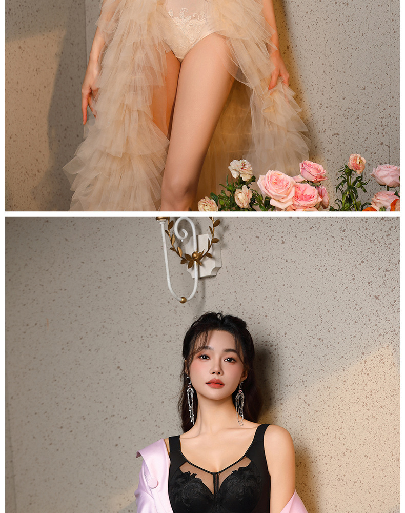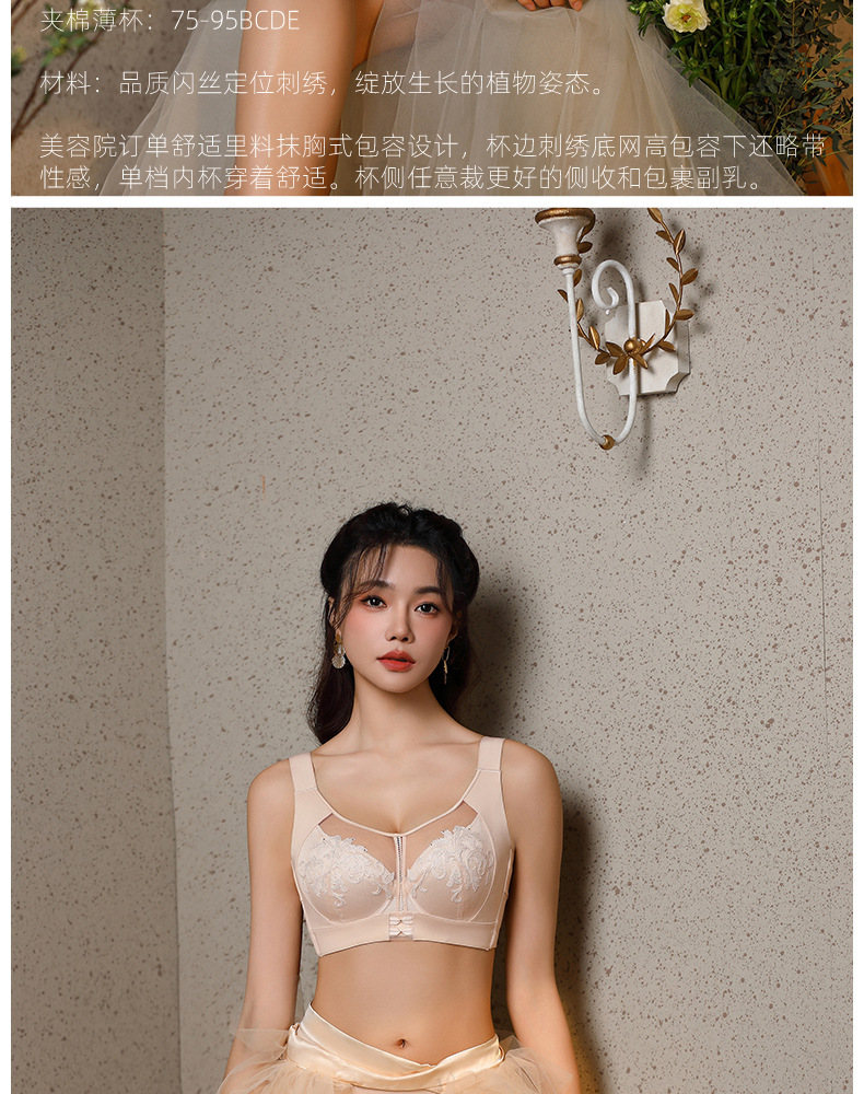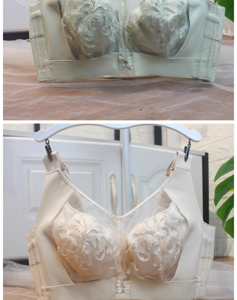 1385 플러스 사이즈 자수 튜브 브래지어 큰 가슴 작은 얇은 컵 속옷 넓은 어깨 끈 부드러운 강철 반지 조정 가능한 유형스토어 가기