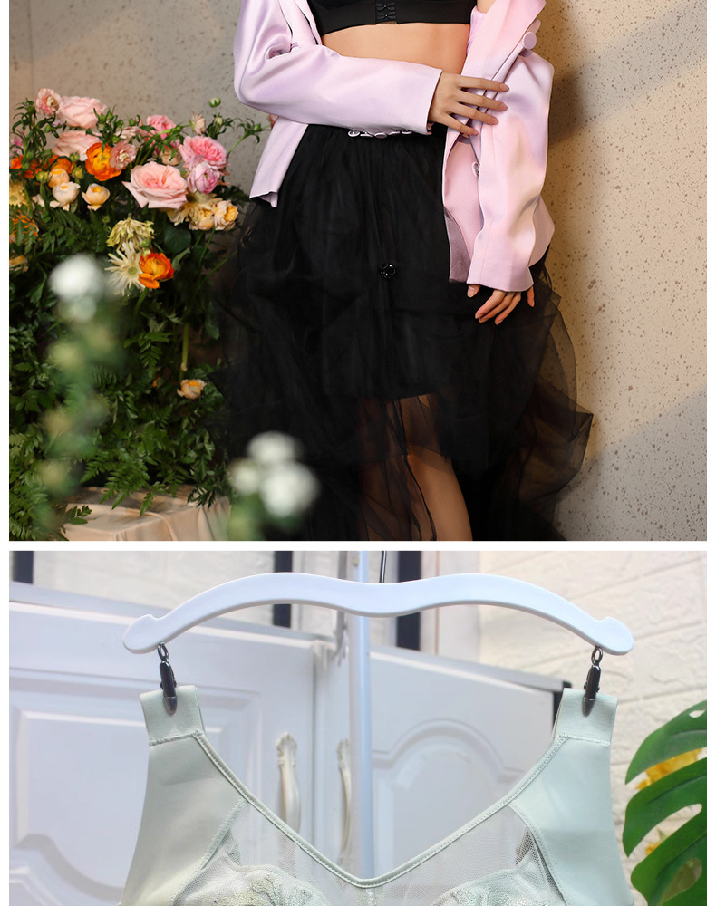 1385 플러스 사이즈 자수 튜브 브래지어 큰 가슴 작은 얇은 컵 속옷 넓은 어깨 끈 부드러운 강철 반지 조정 가능한 유형