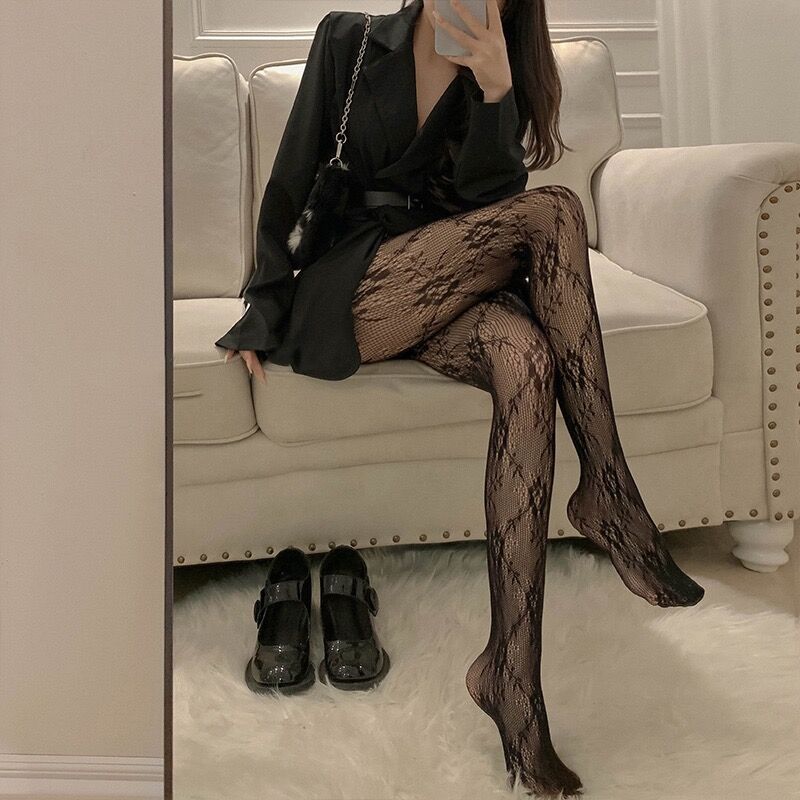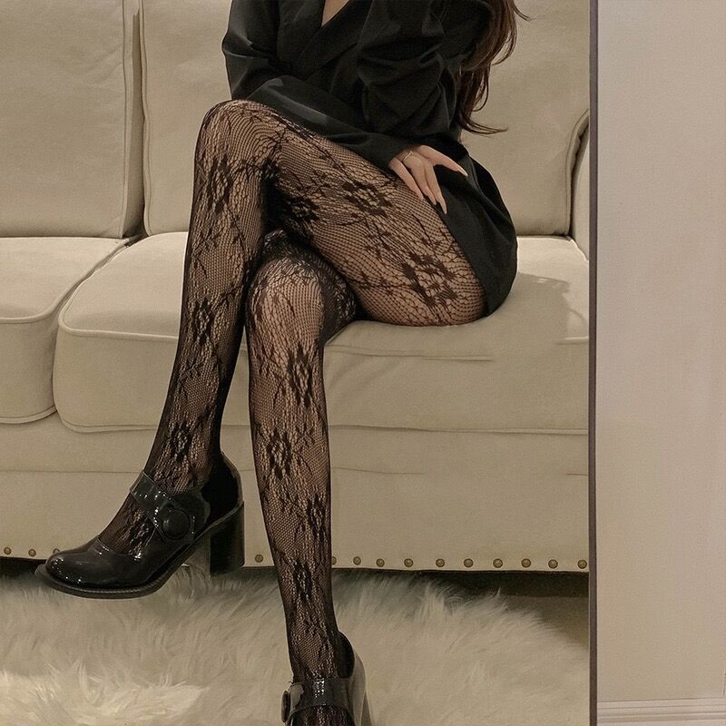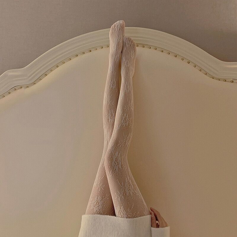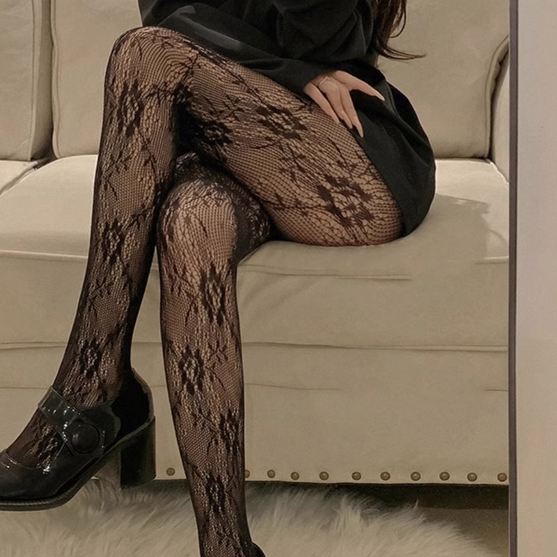 새로운 AY 퓨어 프렌치 레트로 자수 자카드 스타킹 화이트 로즈 블랙 로즈 바인 포장 팬티 스타킹스토어 가기