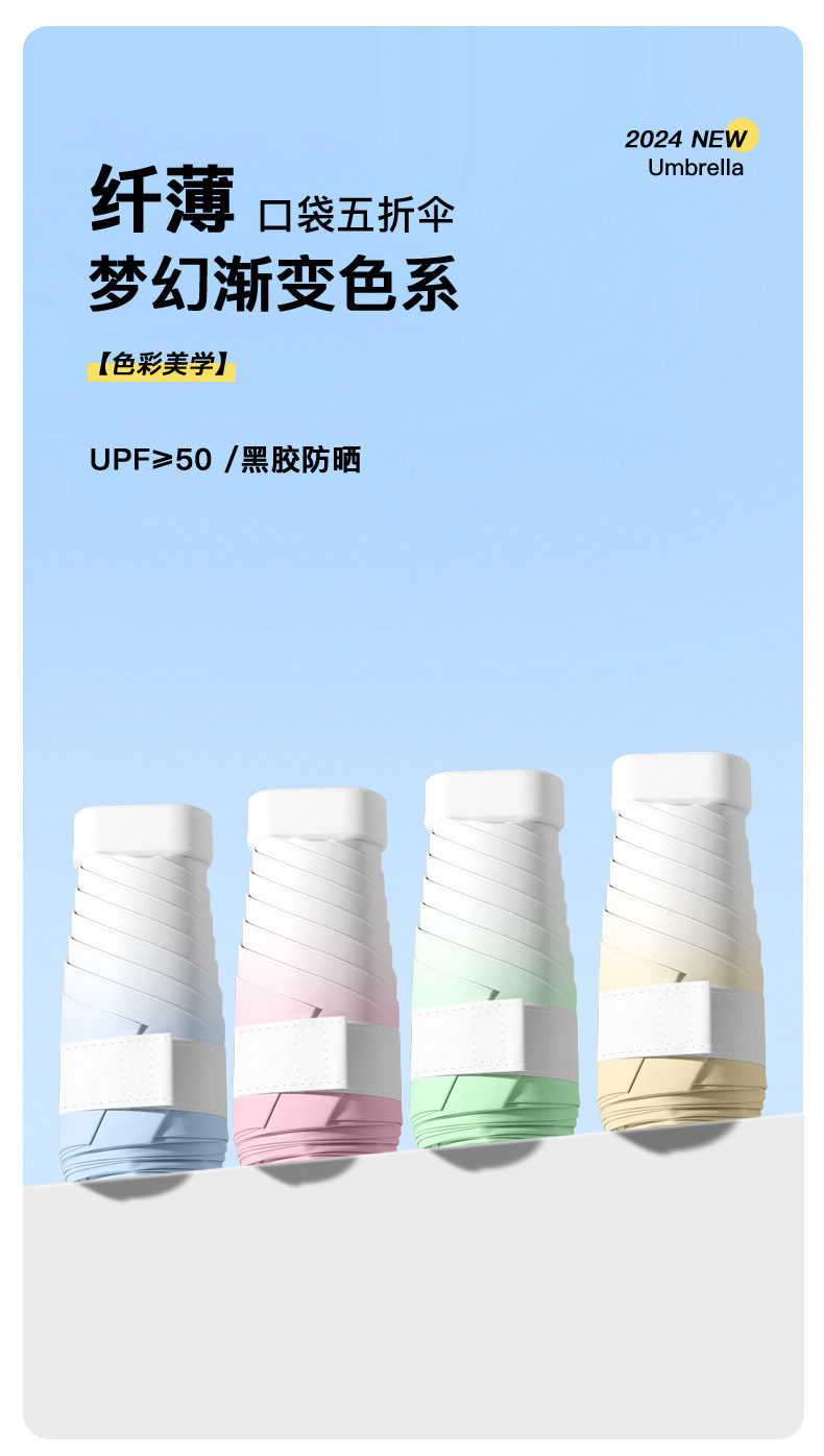 50% 접은 그라디언트 컬러 우산 접히는 우산 강화 두꺼운 맑음 우산 검은 고무 학생 여성 선 스크린 UV 보호 우산스토어 가기
