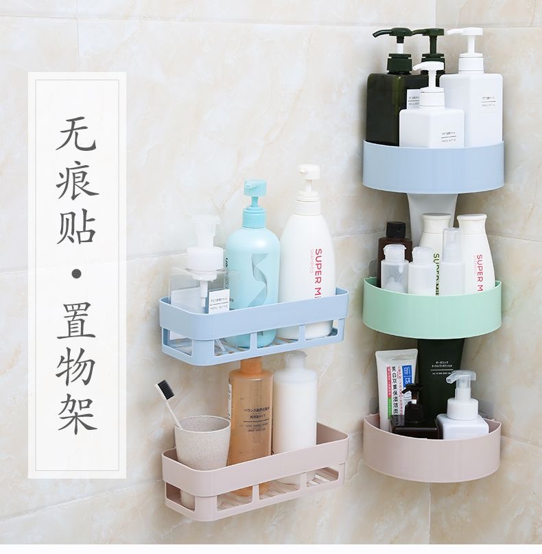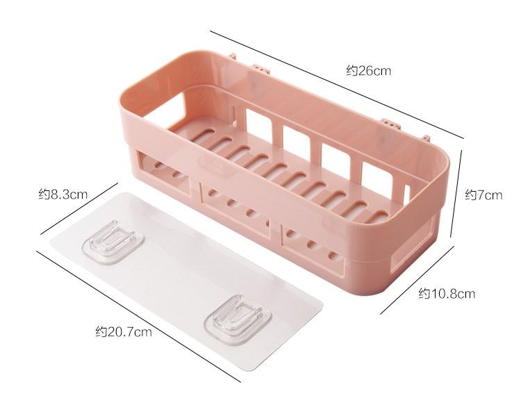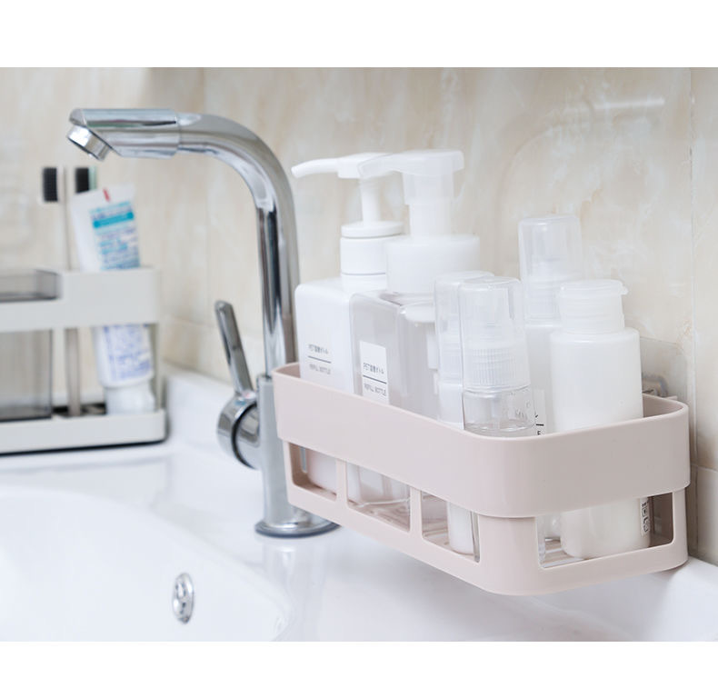 화장실 보관 랙 펀치가없는 화장실 선반 발코니 접착제 보관 상자 벽걸이 비누 상자 보관 랙