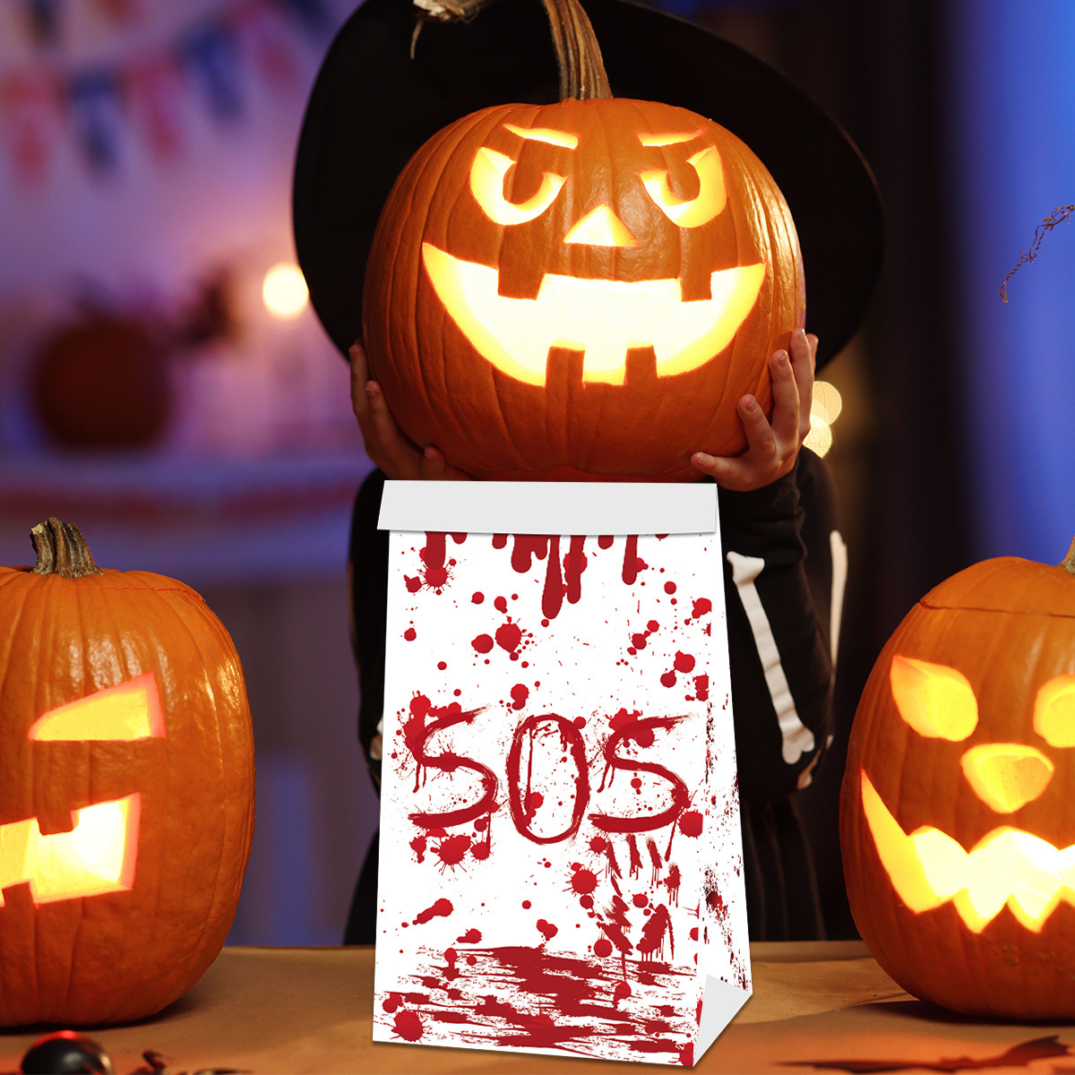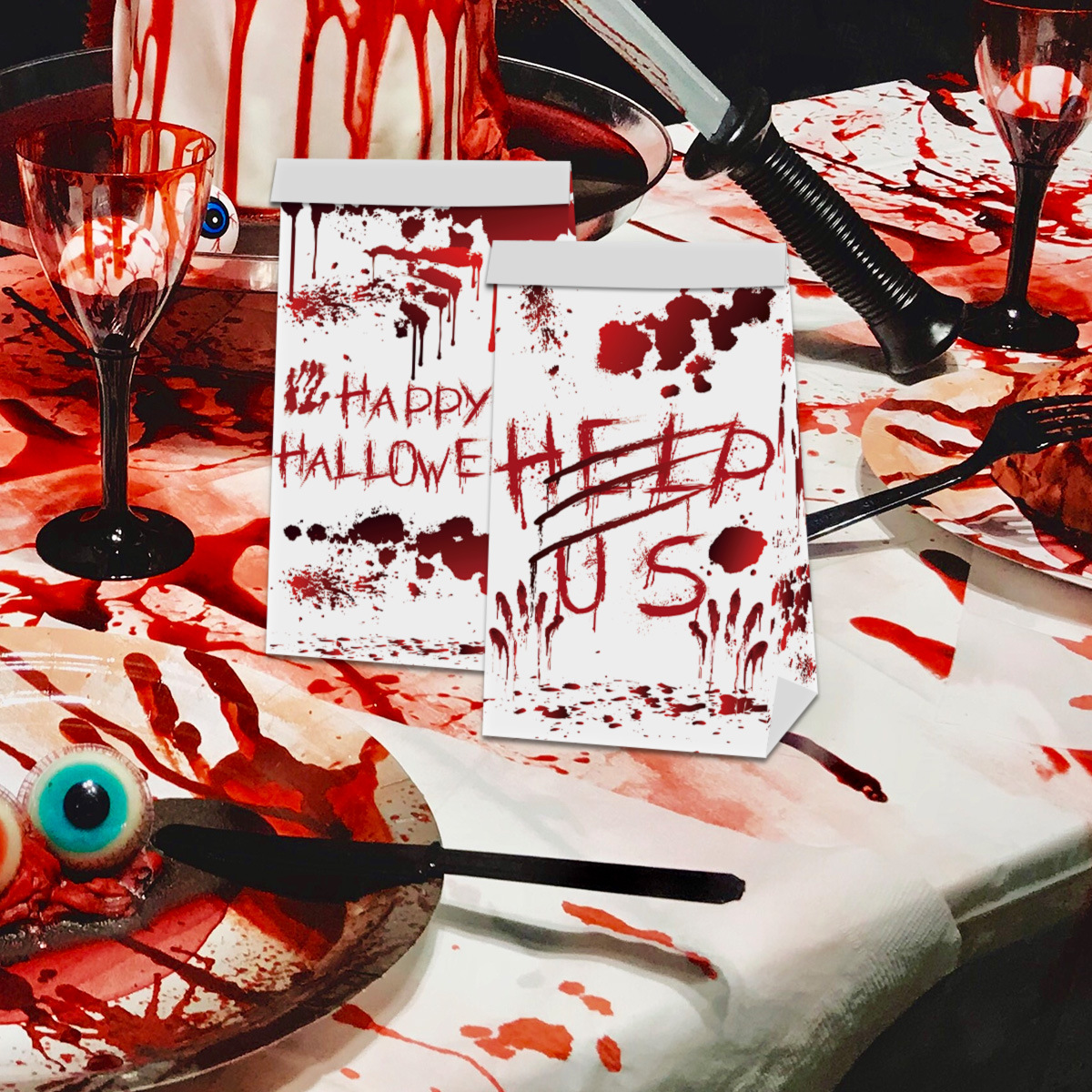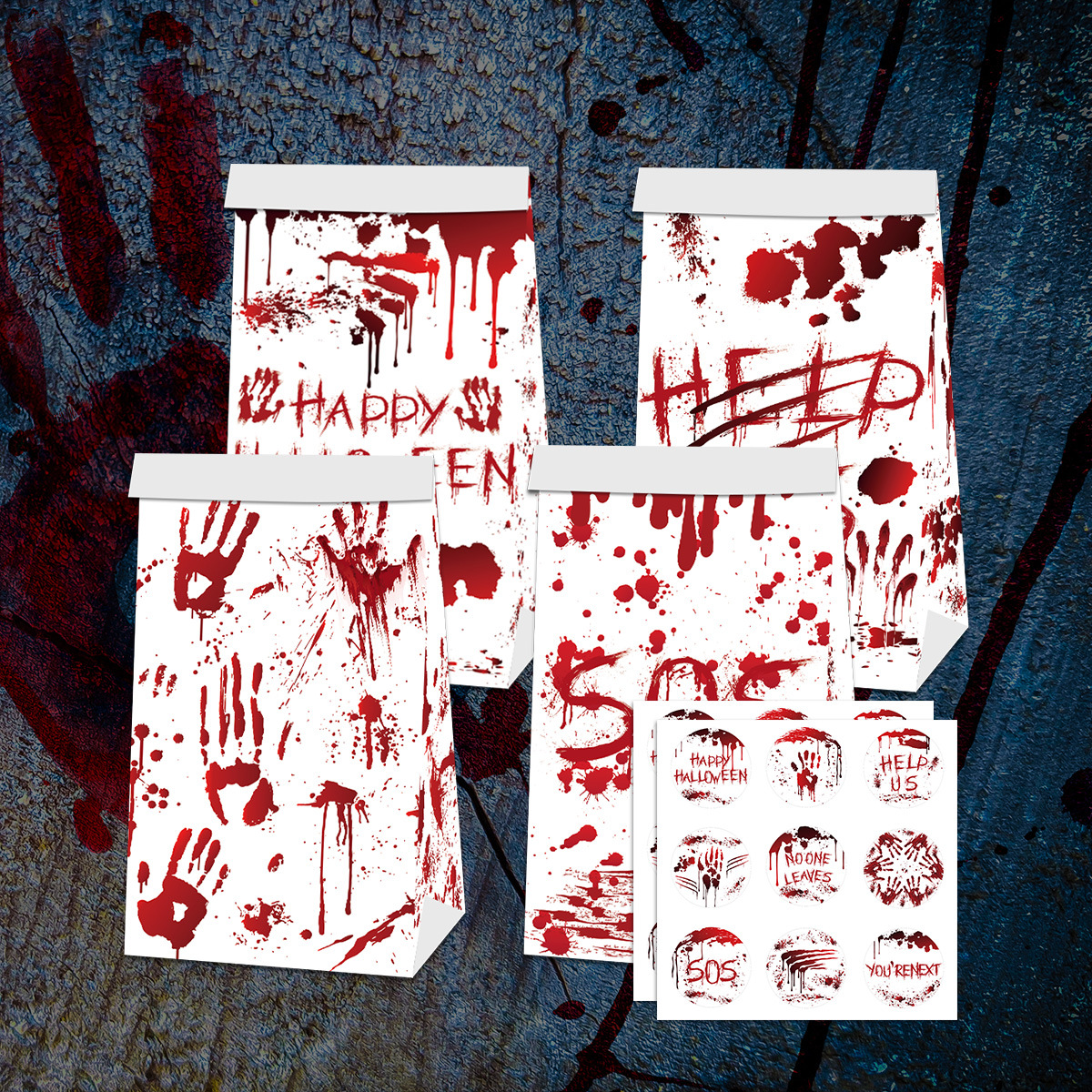 系列:2024跨境新款万圣节糖果零食纸袋恐怖血手印封口贴纸装饰道具派对用品