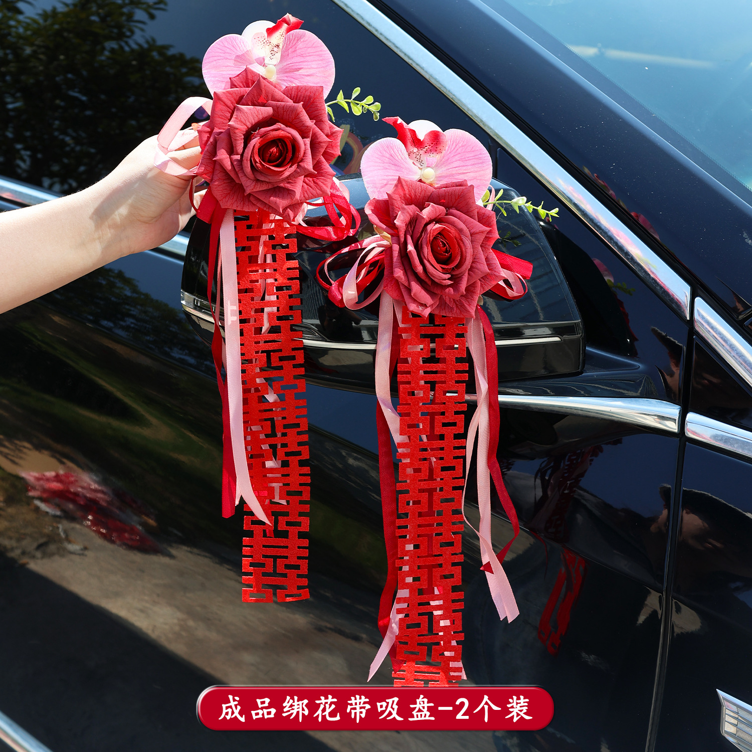 웨딩 카 장식 꽃 시뮬레이션 장미 메인 및 보조 웨딩 자동차 장식 꽃 백미러 플로트 헤드 플로트 자동차 함대 세트스토어 가기