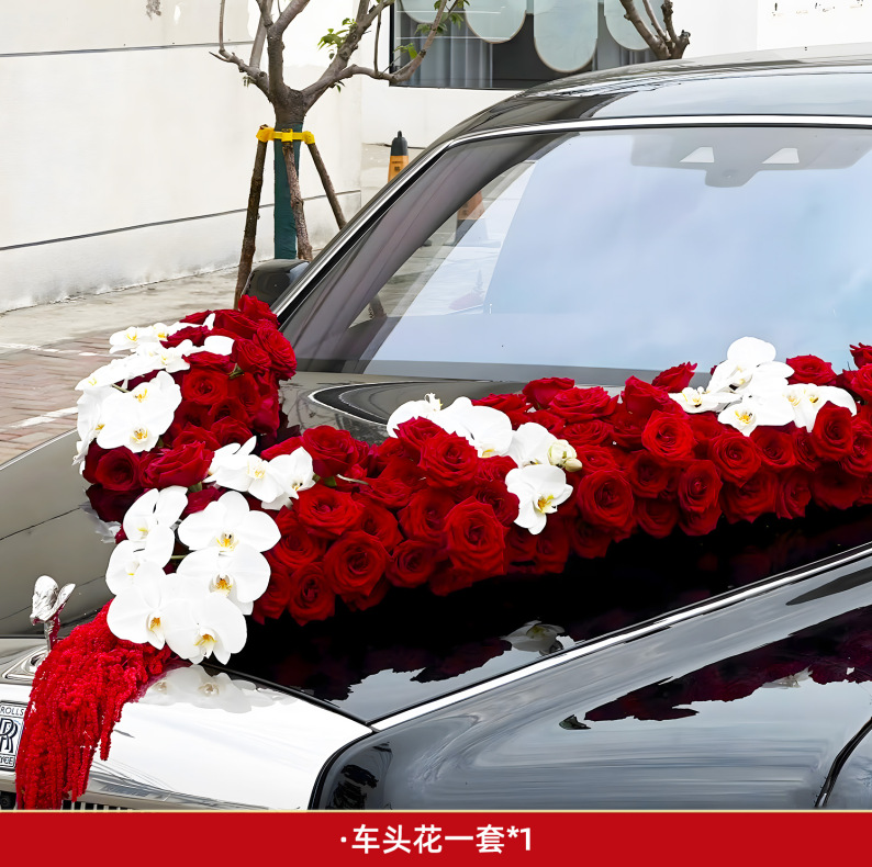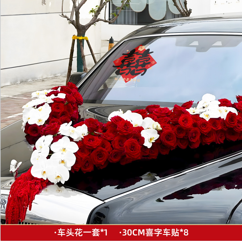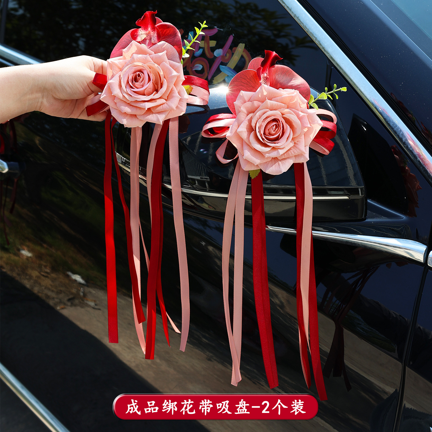 웨딩 카 장식 꽃 시뮬레이션 장미 메인 및 보조 웨딩 자동차 장식 꽃 백미러 플로트 헤드 플로트 자동차 함대 세트