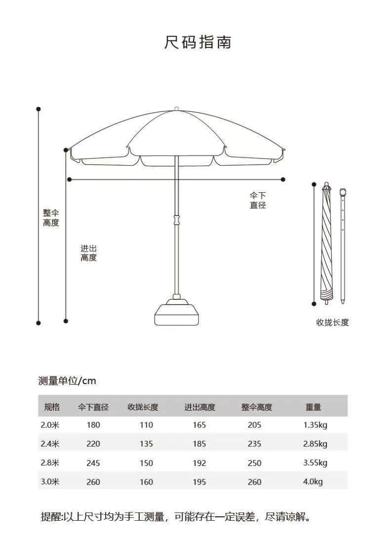 2.4M/2.6M/2.8M/3.0M/3.2M三层伞架防风