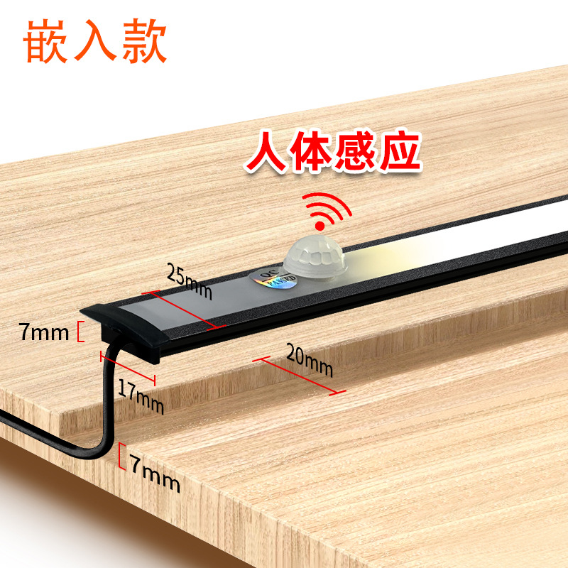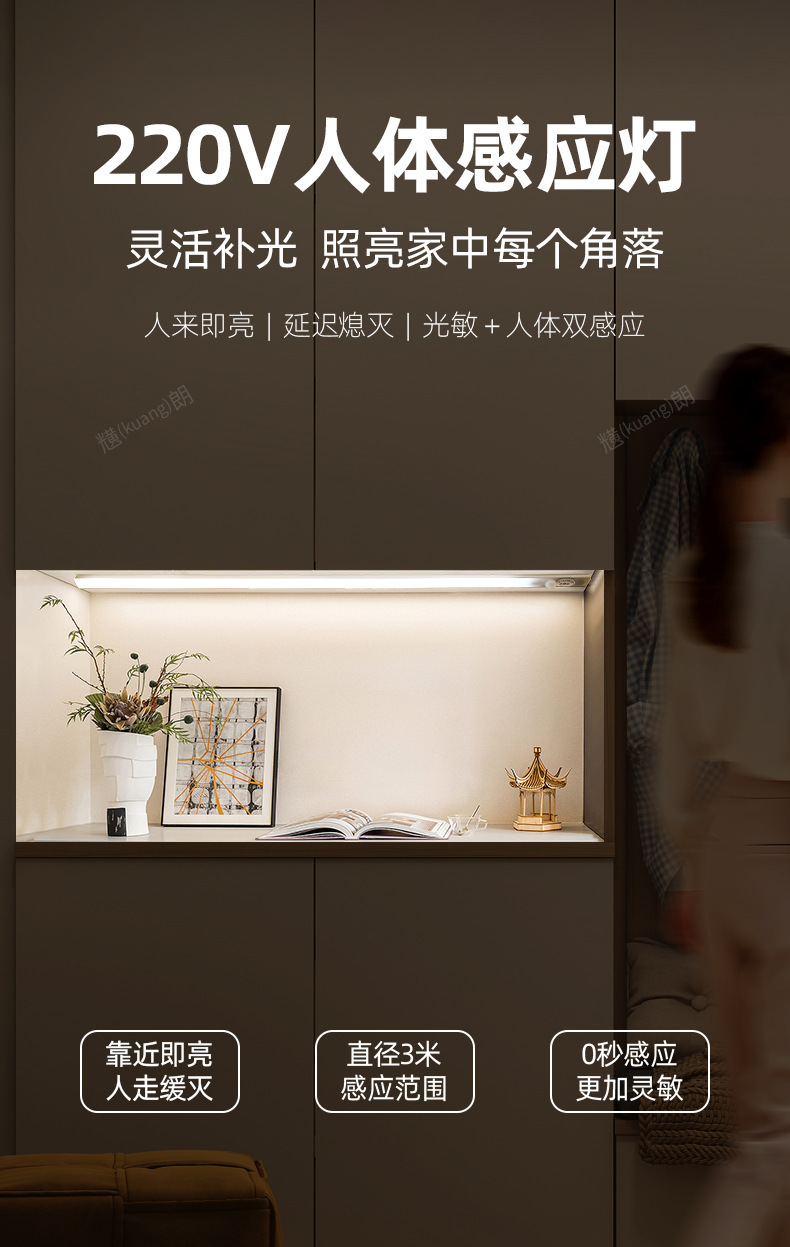 220V 플러그인 손 청소 인체 유도 라이트 바 초박형 야간 조명 내장 캐비닛 긴 스트립 라이트 스트립 학습 조명스토어 가기