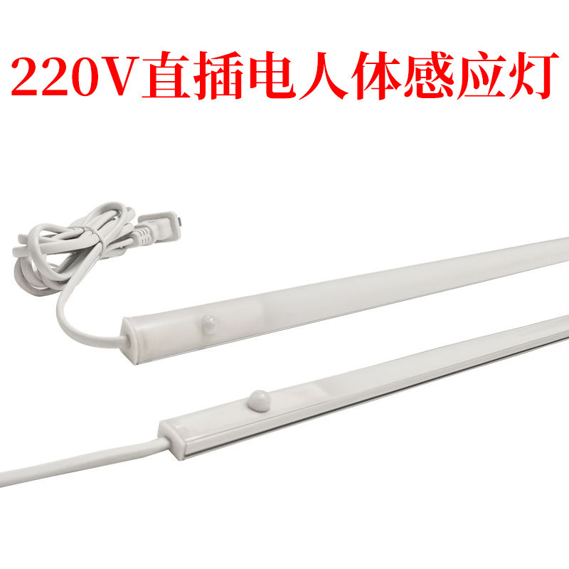 220V 플러그인 손 청소 인체 유도 라이트 바 초박형 야간 조명 내장 캐비닛 긴 스트립 라이트 스트립 학습 조명