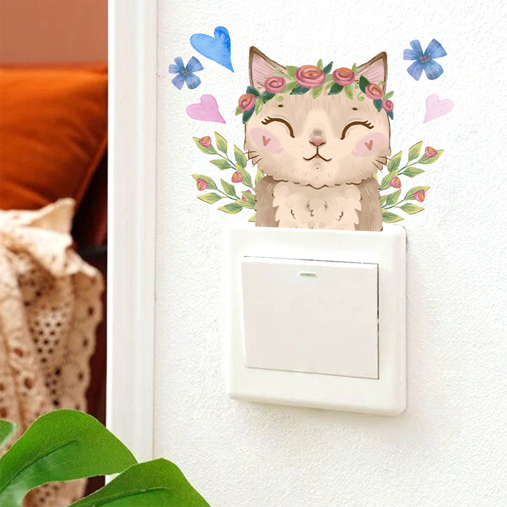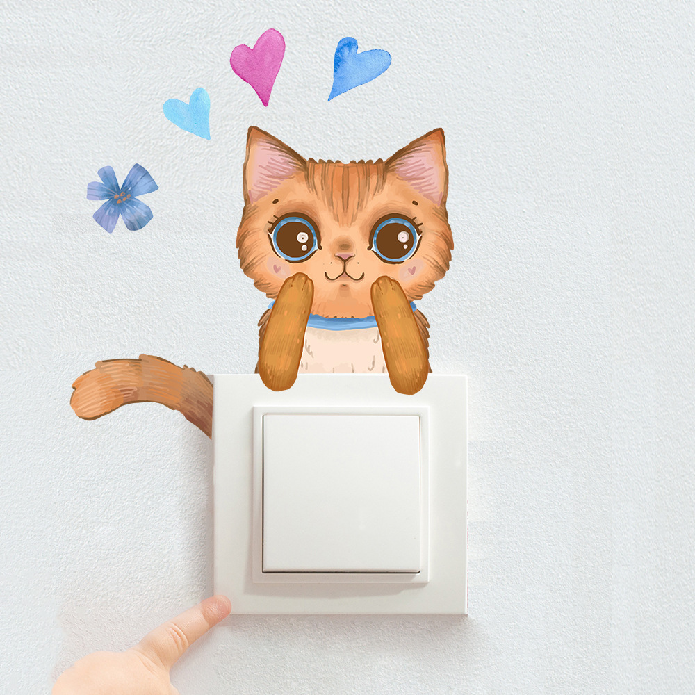 Yiyao DD3331 창조적 인 새끼 고양이 스위치 스티커 거실 침실 벽 장식 방수 스티커