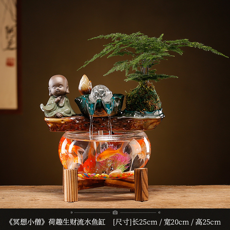 물 순환 물 장식 거실 연구 사무실 금붕어 그릇 라운드 거실 작은 데스크탑 슈퍼 화이트 유리스토어 가기